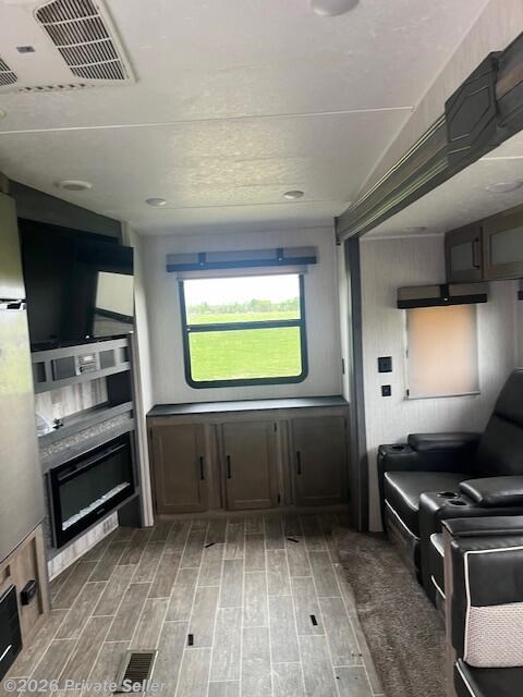 ONE SLIDEOUT POWER RETRACTABLE., 18 FT POWER AWNING, 2 PROPANE TANKS WITH CAPACITY OF 40 LBS (9.4 GAL), 43 GAL FRESH WATER TANK CAPACITY, 70 GAL GRAY WATER TANK, 32 GAL BLACK WATER TANK CAPACITY, LEATHER SOFA/SEATS, DINING TABLE WHICH CONVERTS TO A SOFA, QUEEN SIZE BED, SLEEPS 6 TOTAL. BEDROOM CLOSETS, SHADES, 2 TVS, 1 BATHROOM, 2 AXLES, 2 AIR CONDITIONERS AND HEATER AUTOMATIC, WATER HEATER ELECTRICAL AND PROPANE, SPEAKERS INSIDE AND OUTSIDE, BLUETOOTH AUDIO, FAUX FIREPLACE. STAINLESS STEEL APPLIANCES.