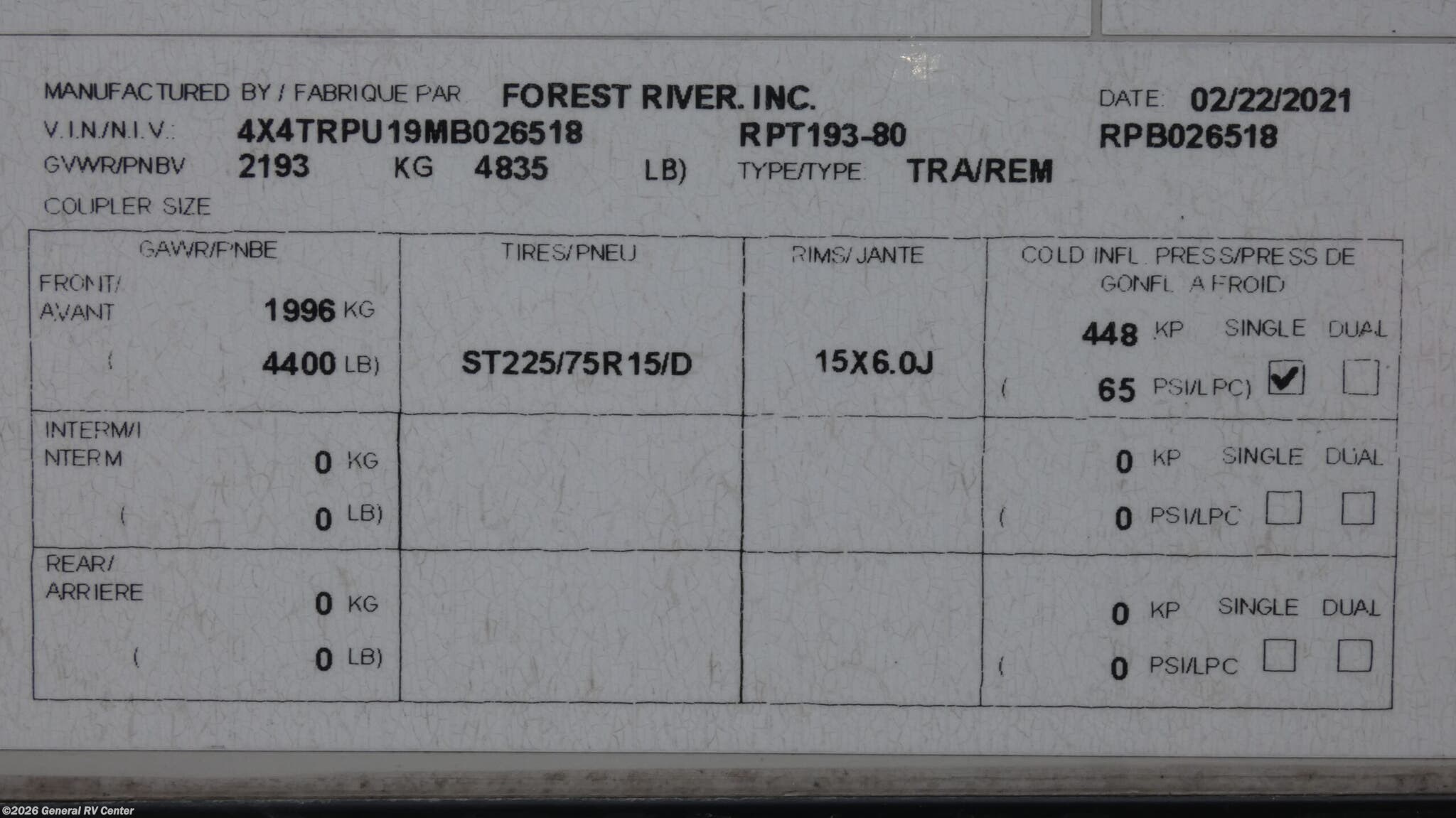 - VIN4X4TRPU19MB026518