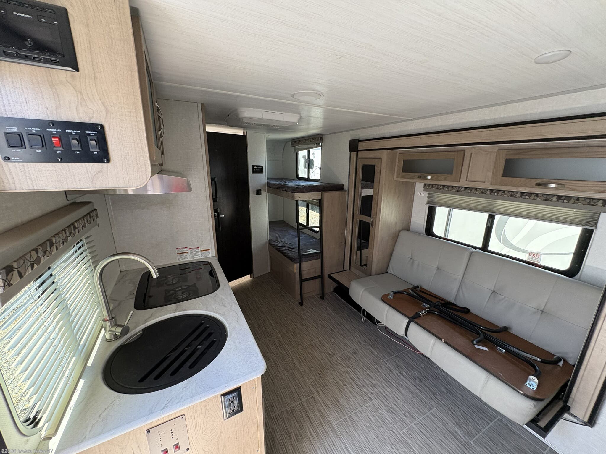 Bunk Beds, Dinette, Kitchen Sink, Living Quarters, Murphy Bed, Non-Smoking Unit, Overhead Cabinetry, Pantry, Pet Friendly, Removable Table, Roof Vents, Self Contained, Shower, Sofa Bed, Toilet