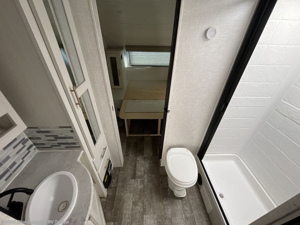 A private bedroom with a walk-around RV queen bed, a walk-through bathroom, and an outside kitchen are a few of the features that you are sure to want in your next RV! You can rest comfortably each night, plus all your clothing can be stored in the dual wardrobes to keep everything tidy. Everyone will stay clean with the full bathroom only steps away, and there is linen storage as well. The main living and kitchen area offers a dinette slide that can also sleep one more camper. The rear kitchen provides everything you will need, plus the outside kitchen gives you more choices. Step inside to start planning your weekend trip!