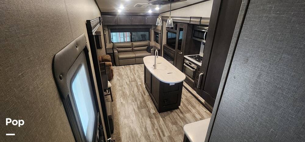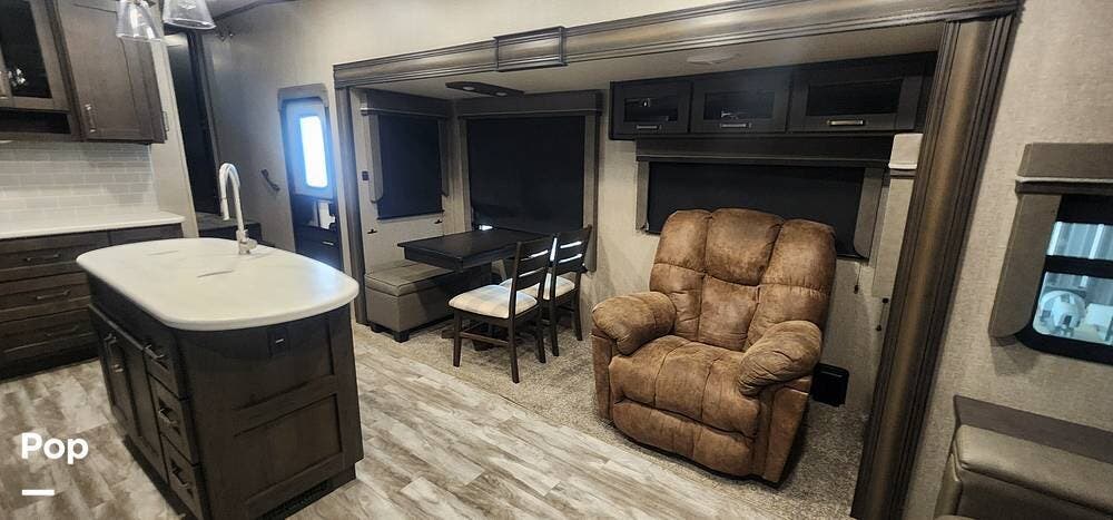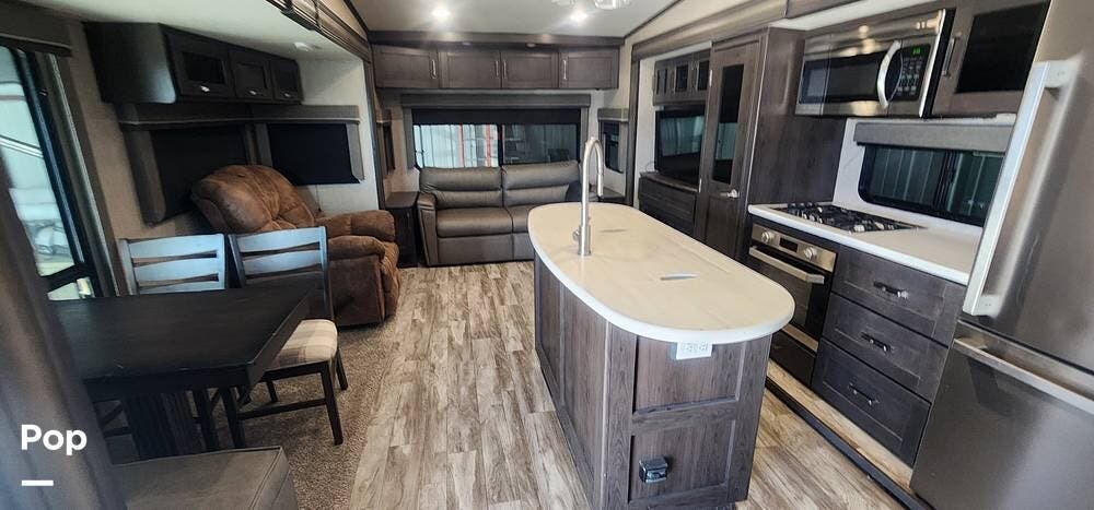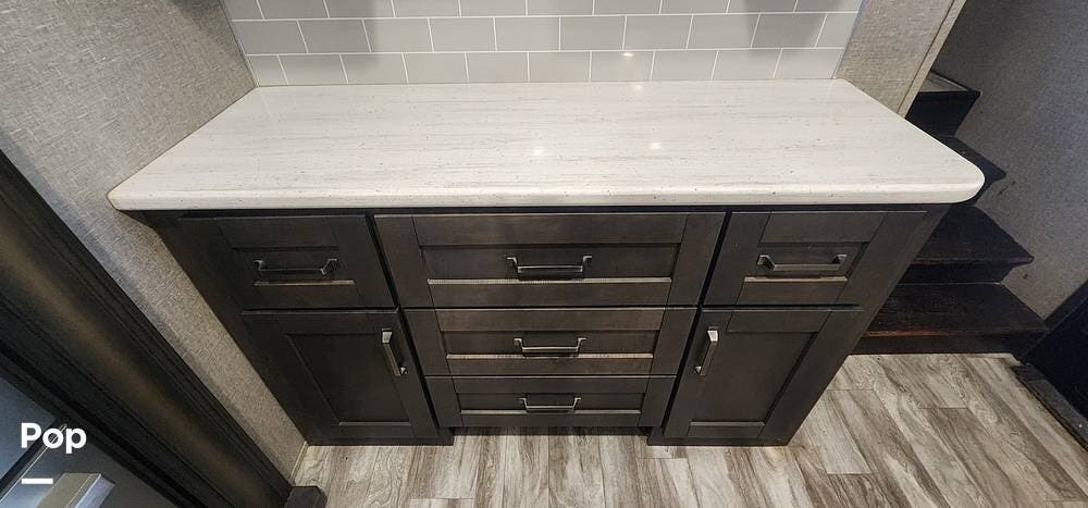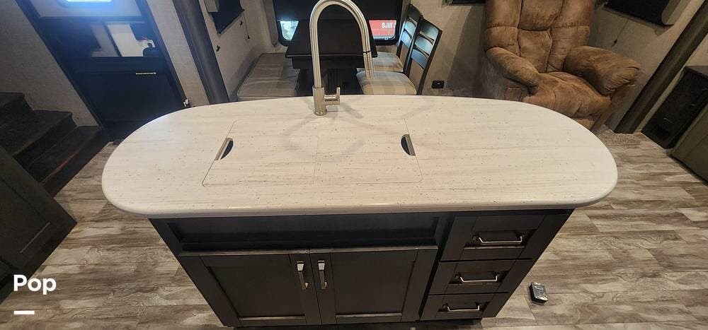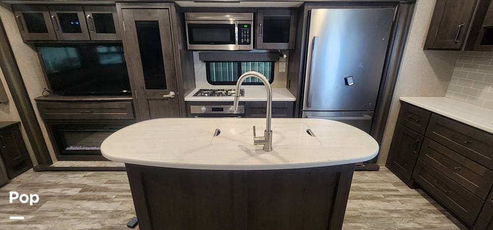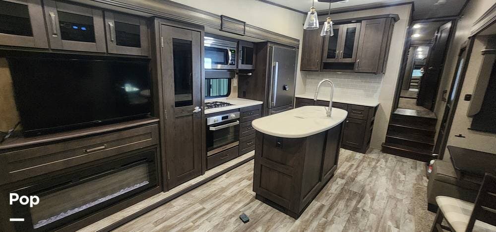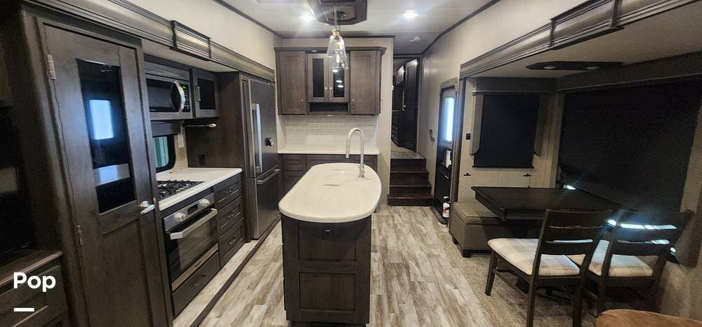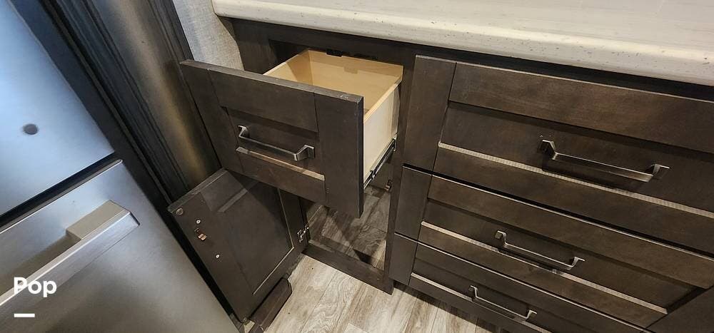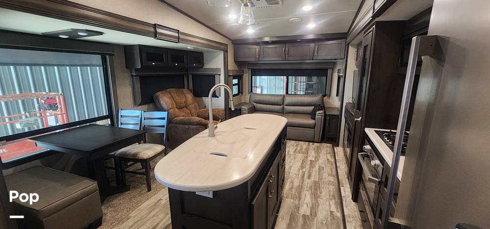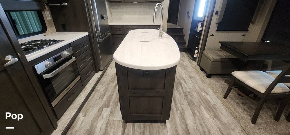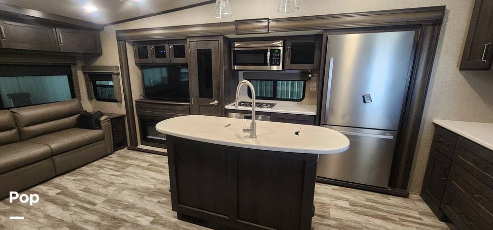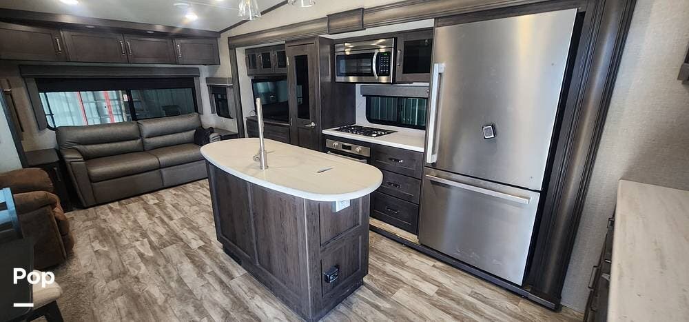 Designed to deliver a residential feel wherever you travel, this well-maintained RV boasts an open-concept living area, upscale finishes, and thoughtful storage solutions throughout.