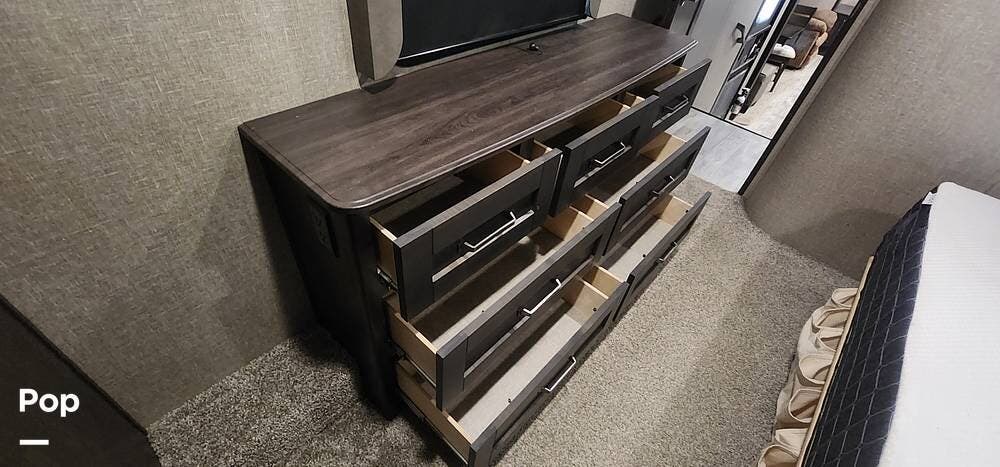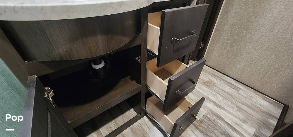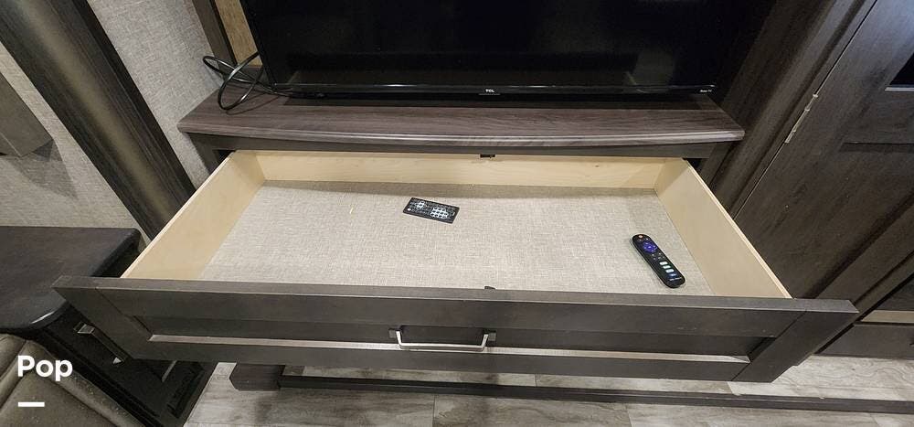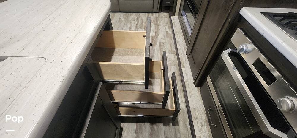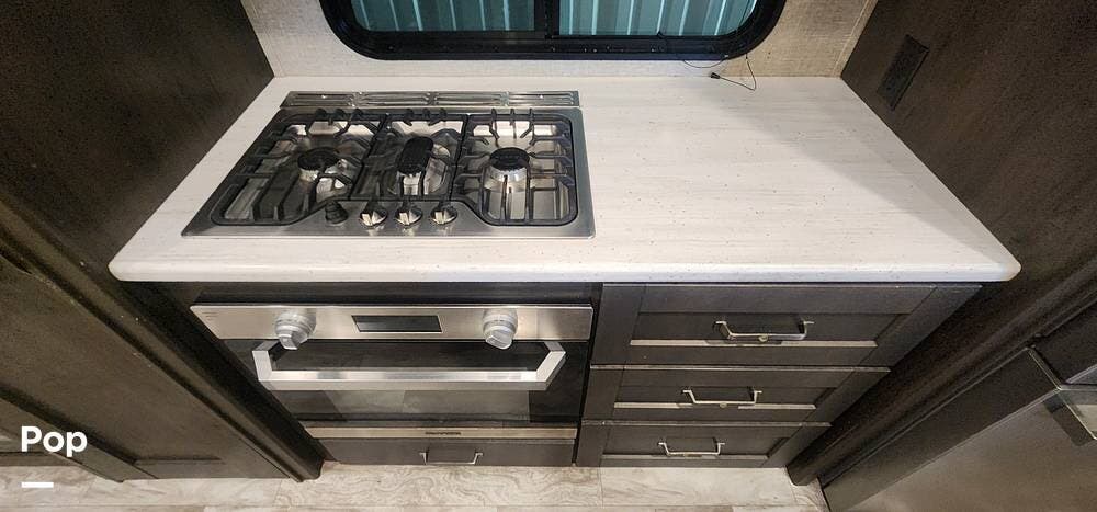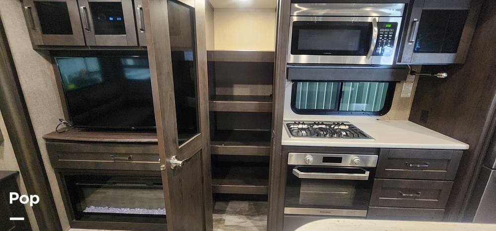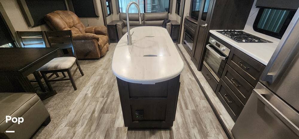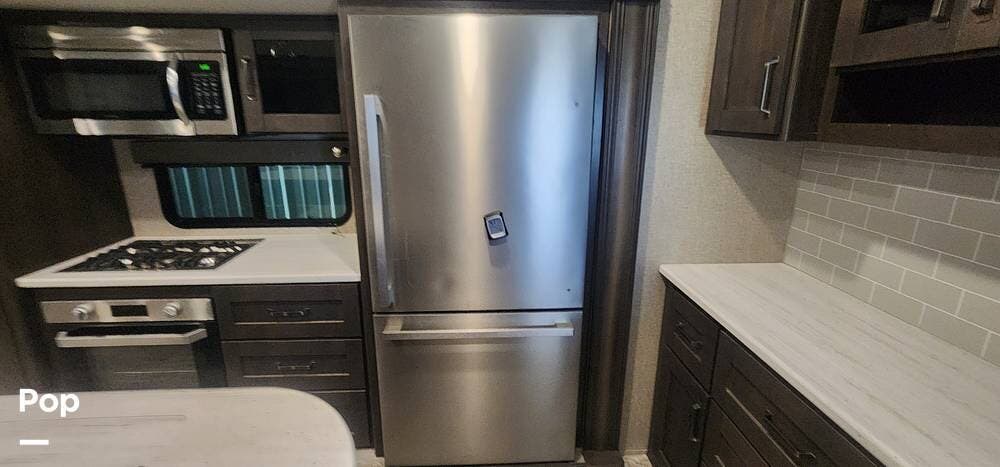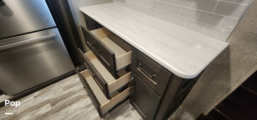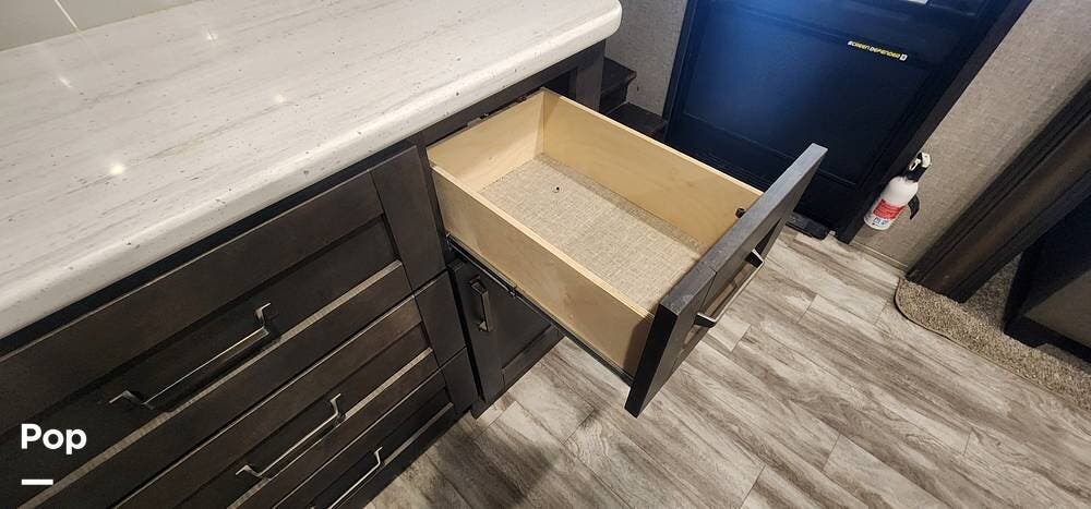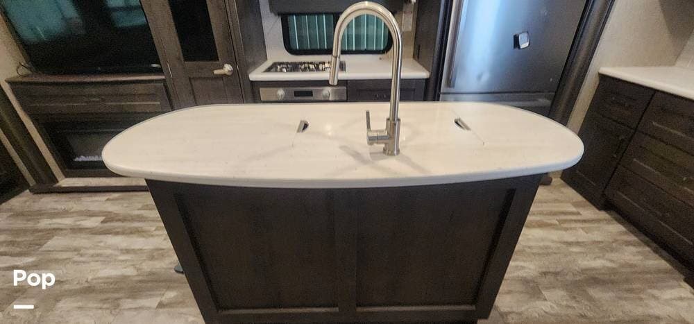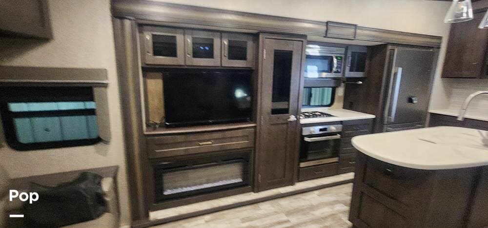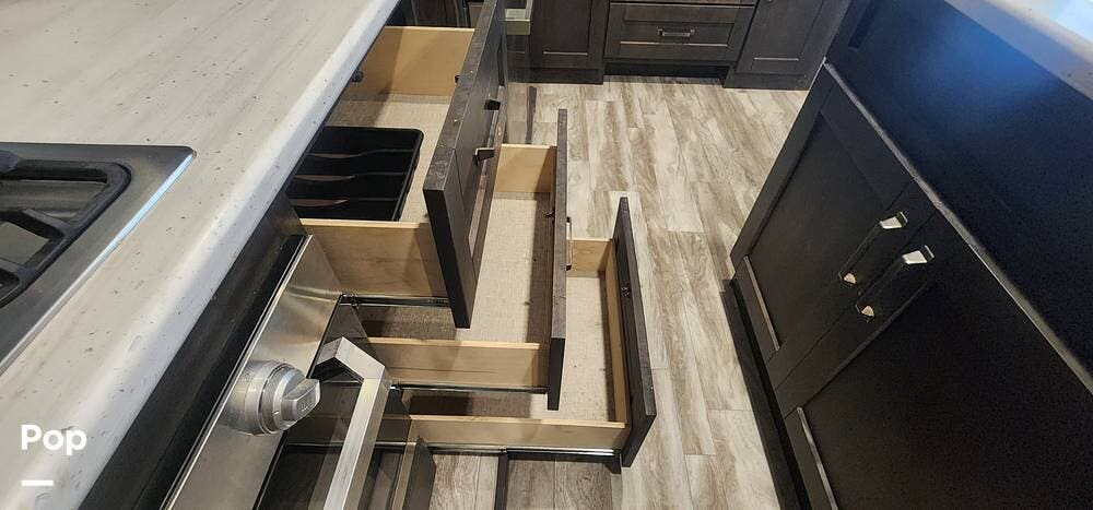 Designed to deliver a residential feel wherever you travel, this well-maintained RV boasts an open-concept living area, upscale finishes, and thoughtful storage solutions throughout.