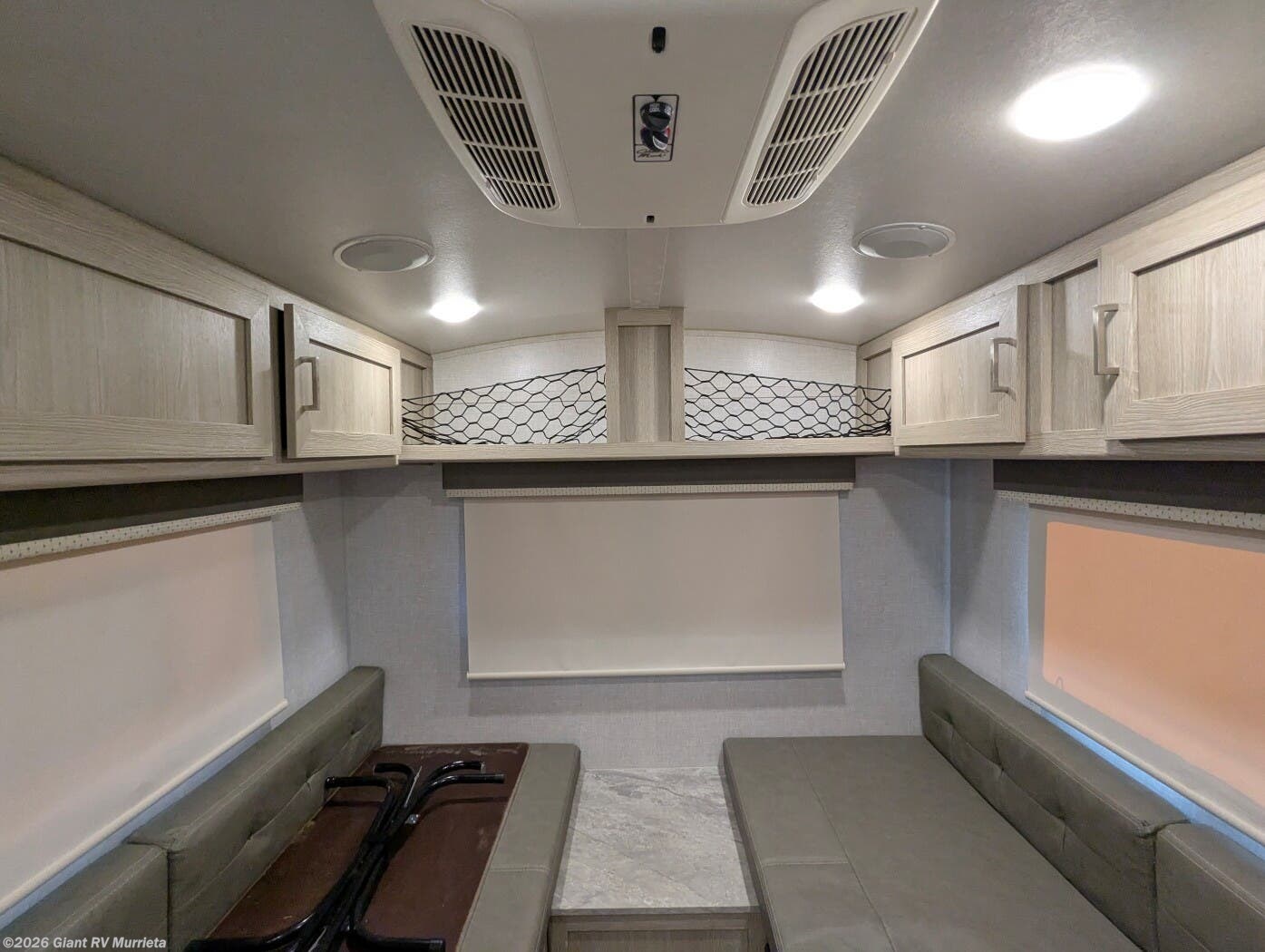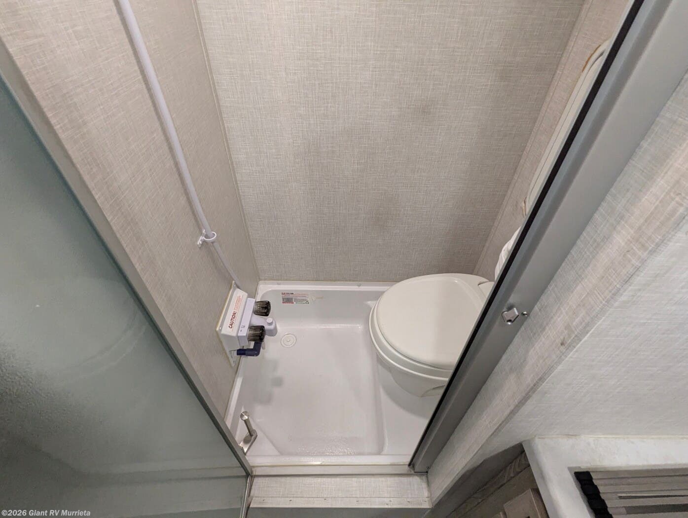 - Full Wet Bath: Rear bathroom with a shower, cassette toilet, and Maxxair fan for campground convenience.