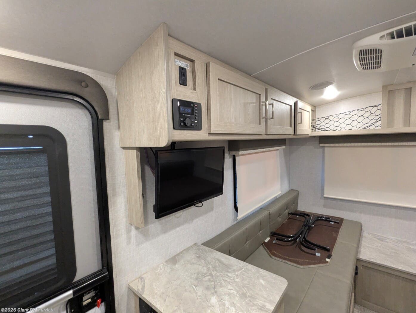 Embark on a cozy getaway with the 2021 Forest River Rockwood Geo Pro G15TB, a lightweight travel trailer perfect for couples or solo travelers. Available at Giant RV, this Geo Pro G15TB features an aluminum cage frame, no slide-outs, and a 2,846 lb. dry weight with a 1,061 lb. payload. With a king bed conversion and compact amenities, it’s ideal for RV camping.