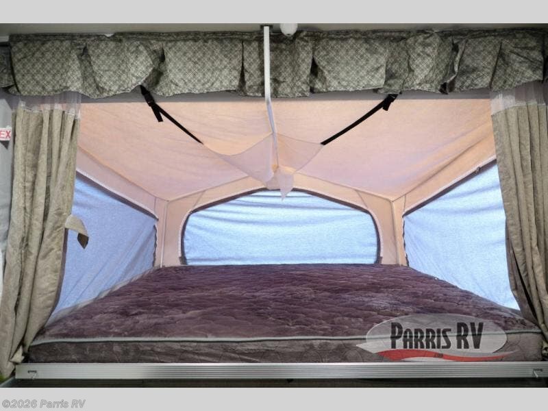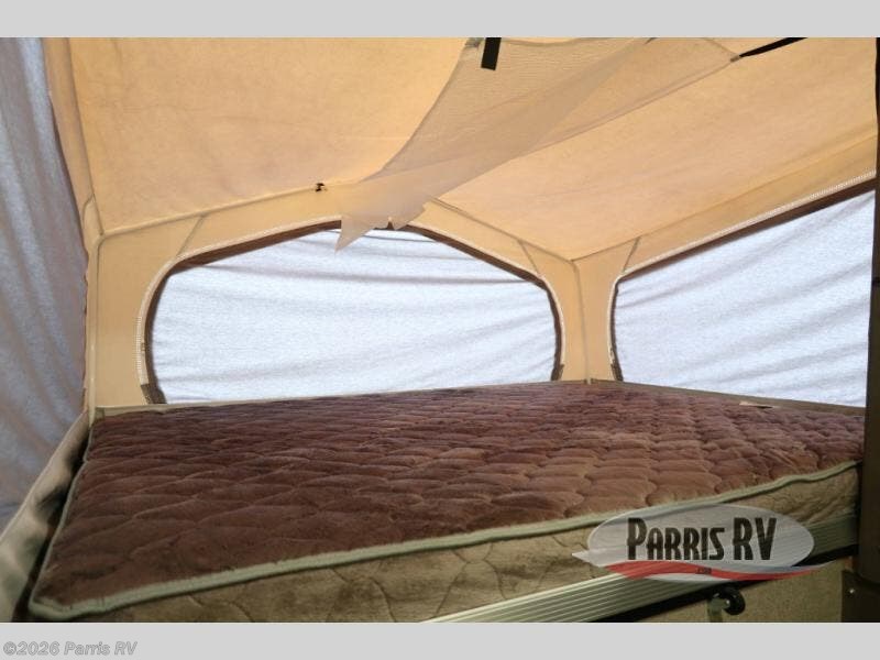 With any Forest River Rockwood High Wall folding pop-up camper, you will start with a powder coated tubular steel frame with five-piece Vinolon Supreme tenting, plus a power roof lift and four EZ crank down stabilizer jacks with sand pads for an easy and sturdy setup. The comfortable interior provides conveniences such as heated mattress bunk ends, a water filtration system, two bed end lights with a fan, and a hot water package including an outside shower. Choose a High Wall today for the travel trailer type amenities and the easy storage and towing capabilities!