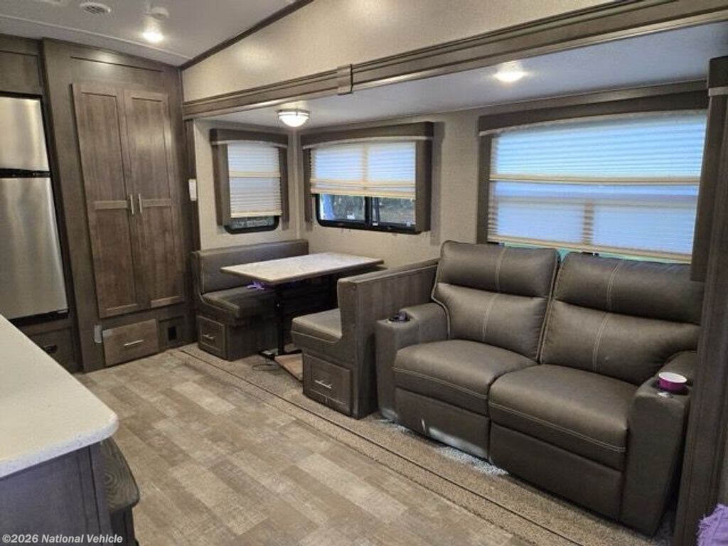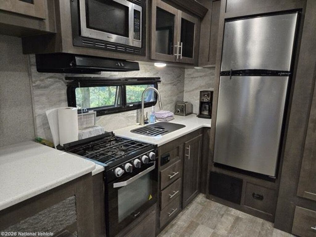 The 2021 Forest River Rockwood Ultra Lite 2882S is a thoughtfully engineered 33' fifth wheel that blends lightweight towing, spacious living, and premium amenities to elevate your travel experience. Designed with comfort and convenience in mind, this Ultra Lite model features a well-appointed interior with slide-outs that open up generous living space, creating a bright and inviting environment for relaxing and entertaining. The fully equipped kitchen boasts modern appliances, ample counter space, and abundant storage - perfect for preparing meals whether you?re on a weekend escape or an extended adventure. The private bedroom provides a comfortable retreat with a queen size bed and wardrobe storage, while the full bathroom offers residential-style convenience on the road. With high-quality finishes, abundant storage throughout, and thoughtful touches like LED lighting and entertainment options, the Rockwood Ultra Lite 2882S delivers the comforts of home in a travel-ready package. Whether you?re heading to your favorite campground or exploring new destinations, this fifth wheel combines versatility, durability, and style to make every journey memorable.