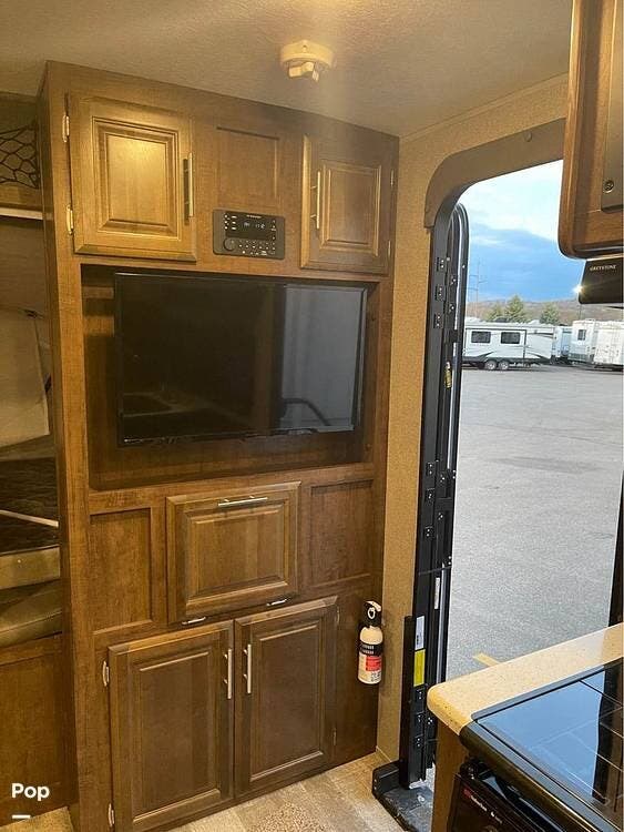 There are plenty of extras with this trailer, a 10,000lb stabilizer hitch. A spare tire with hard cover, Upgraded sewer hoses, stand for the jacks, a power tongue jack, a portable waste tank and much more.