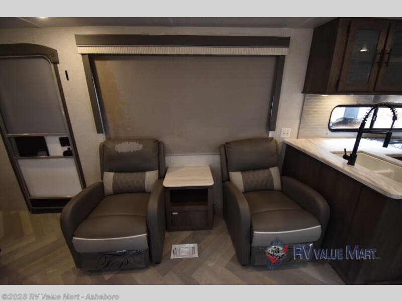 With a spacious kitchen and panoramic windows, this travel trailer is sure to stand out! The Versa Lounge is customizable for you to reconfigure for your needs and it also has Stow N Go storage for extra blankets. Your nights will be spent in true comfort by playing games at the booth dinette or relaxing in one of the two chairs by the fireplace. You can either cook a delicious meal in the rear kitchen or you can add the optional exterior camp kitchen to breathe in some fresh air while you cook. After a fun-filled day, you can rinse off in the walk-in shower then head to the front private bedroom, grab your pajamas from the walk-in closet, and lay down on the Evergreen mattress for a good night's rest!