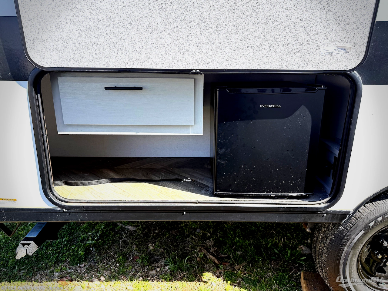 How would having an outdoor 1.6-cu. ft. refrigerator with an optional LP griddle and a 14' power awning with adjustable legs sound with your next trailer? You will also find full pass-through storage for your fishing poles, charcoal, and camping chairs. Inside, you can sleep on your own RV queen Murphy bed at night, and relax on the booth dinette during the day. The double-size bunks with storage will be perfect for extra travelers, and the full bathroom will keep everyone refreshed for the next activity. And don't forget about the USB charging outlets, the upgraded appliance package, and the panoramic window.