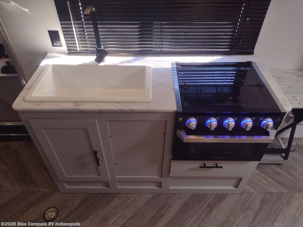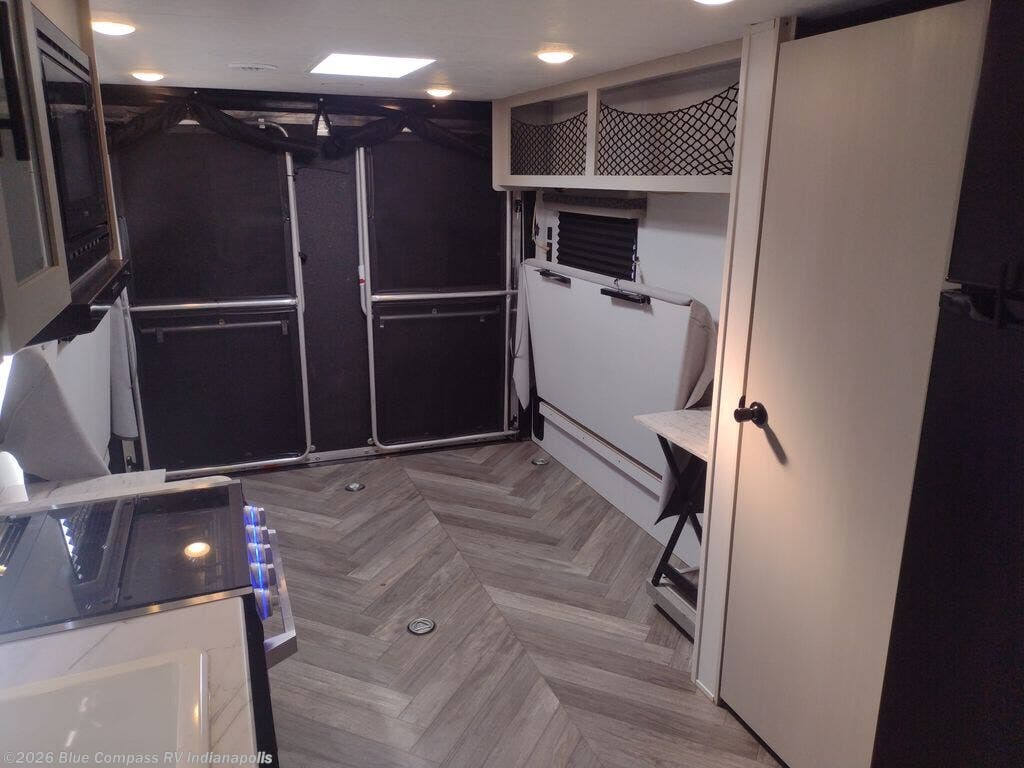 Imagine riding your off-road toys after unloading them from 13' 4" of cargo storage that doubles as your living area and kitchen. You can quickly set up the dual opposing sofa sleepers and removable table to eat the meal you cooked with the upgraded appliance package. You will find privacy in the full bathroom which includes a neo-angled shower with skylight and linen storage, plus the front bedroom offers an RV queen bed with shoe storage underneath. The sofas will allow the kids or your friends to have their own space, plus the USB charging outlets will keep their electronics ready to go.