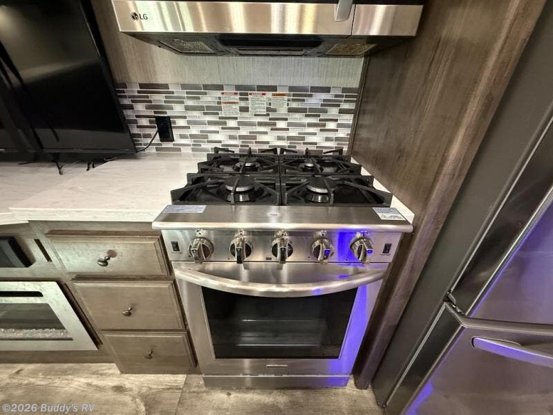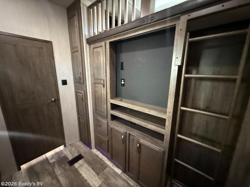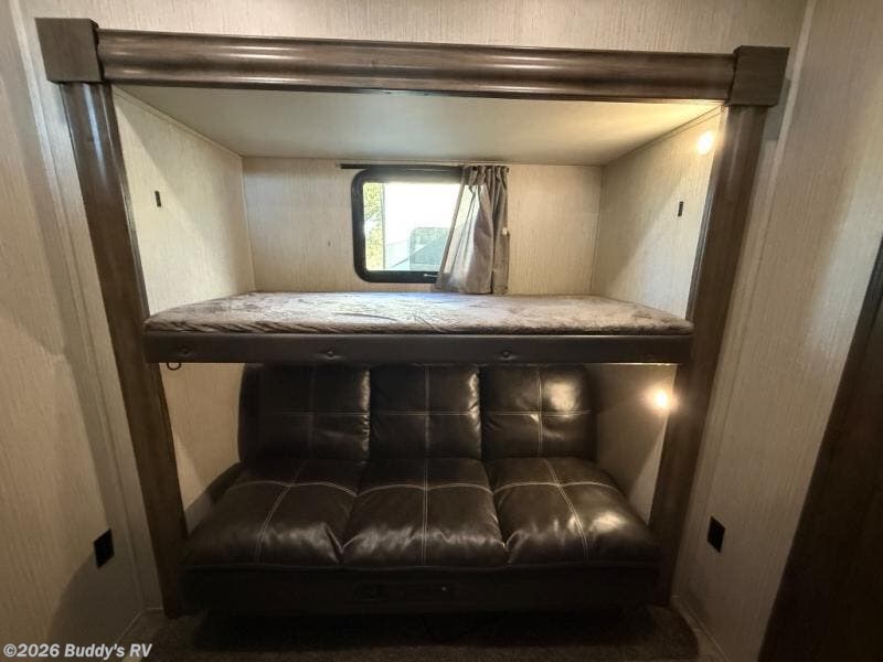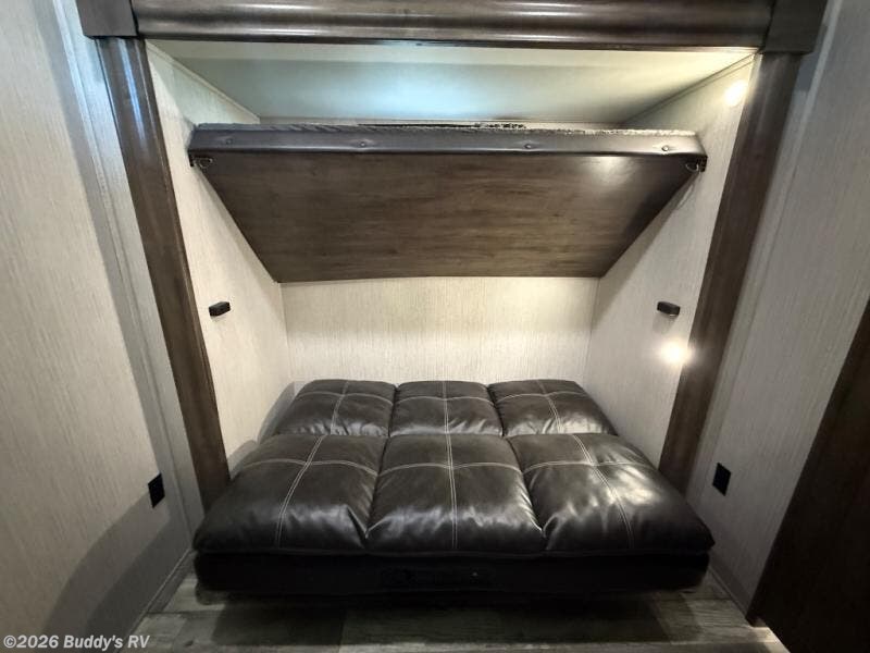 For the ultimate family-friendly fifth wheel, you will want this four-slide Sandpiper fifth wheel. With two entry doors, you can easily access the inside of this model from the rear or the front. Your kids will enjoy their own space with the bunkhouse suite that has its very own full bathroom, as well as a loft above. Outside you can enjoy the shade from the 15' electric awning with LED lights and the convenience of the exterior kitchen with a bumper-mount swivel gas grill.