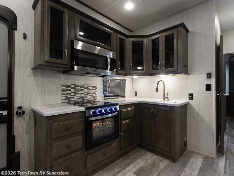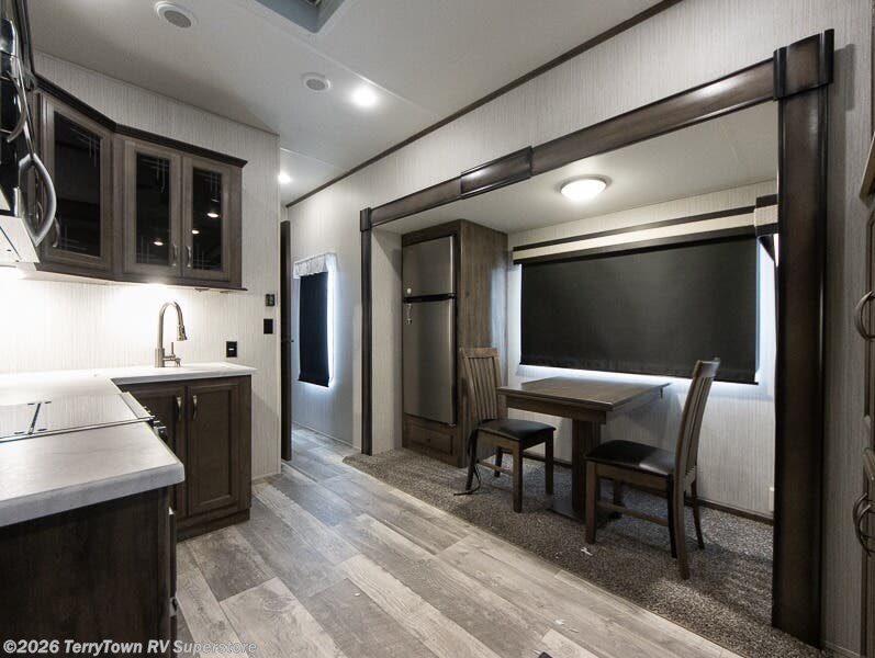 As a lighter and more maneuverable choice, the Forest River Sandpiper C-Class fifth wheel lets you enjoy a floorplan at the size you need without sacrificing the luxury you desire! These fifth wheels are at the cutting edge of innovation, and they are the perfect combination of elegance and convenience. The automatic electric leveling system will be such a blessing to have while you set up camp, and the Underbelly Armor will protect your unit from unnecessary decay and erosion. You will especially appreciate the MORryde entry step as you carry your luggage inside and store your perishables in the 10.7 cubic foot stainless steel refrigerator. You will also find extra-large picture windows all throughout the interior so that you can let your surroundings engulf you while you remain indoors.