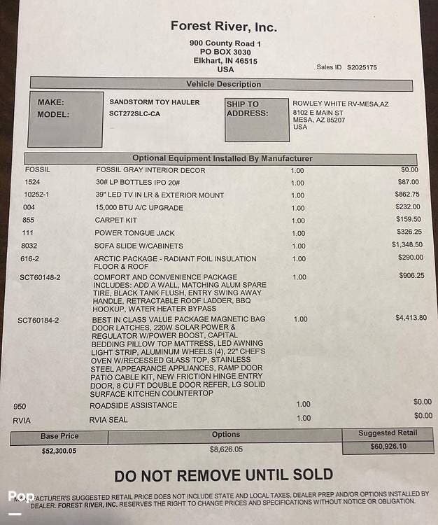 Request More Info on this 2021 Forest River Sandstorm 272SLC Offered for sale by Pop RVs