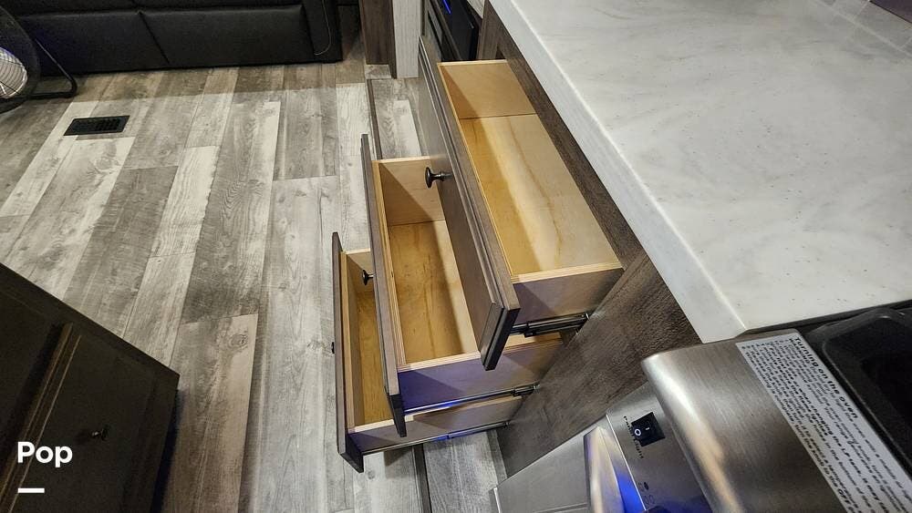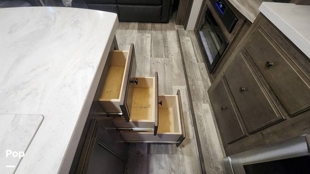 Step into a world of opulence as you enter the spacious and thoughtfully designed interior of the Sierra 321RL. The open floor plan creates a welcoming atmosphere, making it ideal for entertaining friends and family or simply unwinding after a day of exploration. Plush furnishings and high-end finishes abound, providing a touch of elegance to every journey.