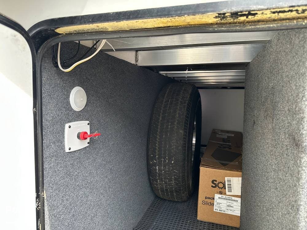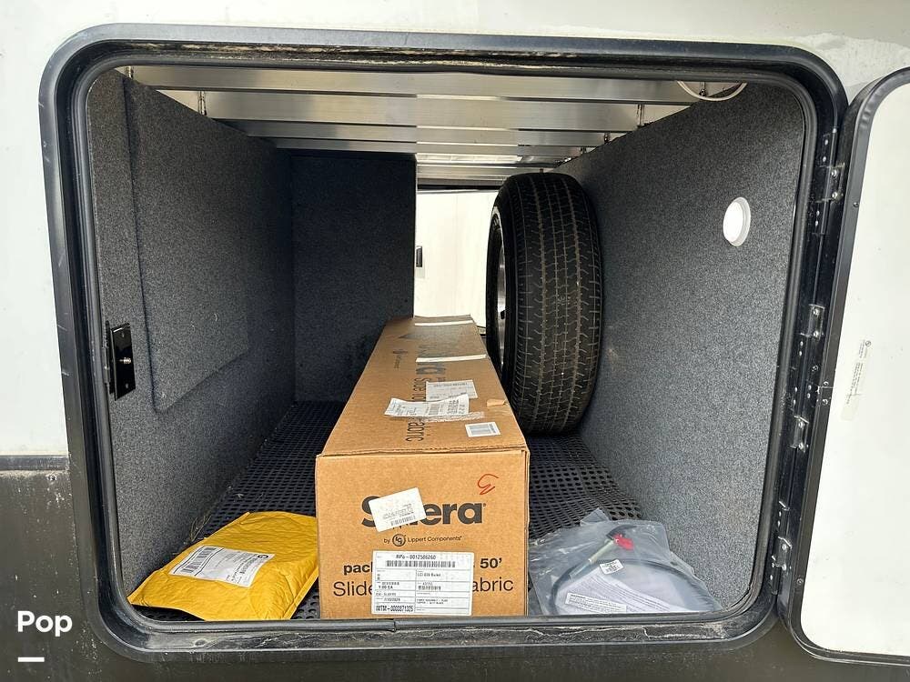 Large pass-through storage is available in front and another in the back, accessible from three sides, with an additional entrance featuring a pull-out tray.