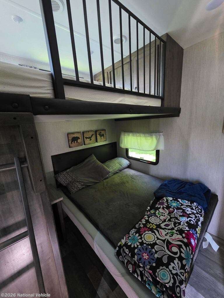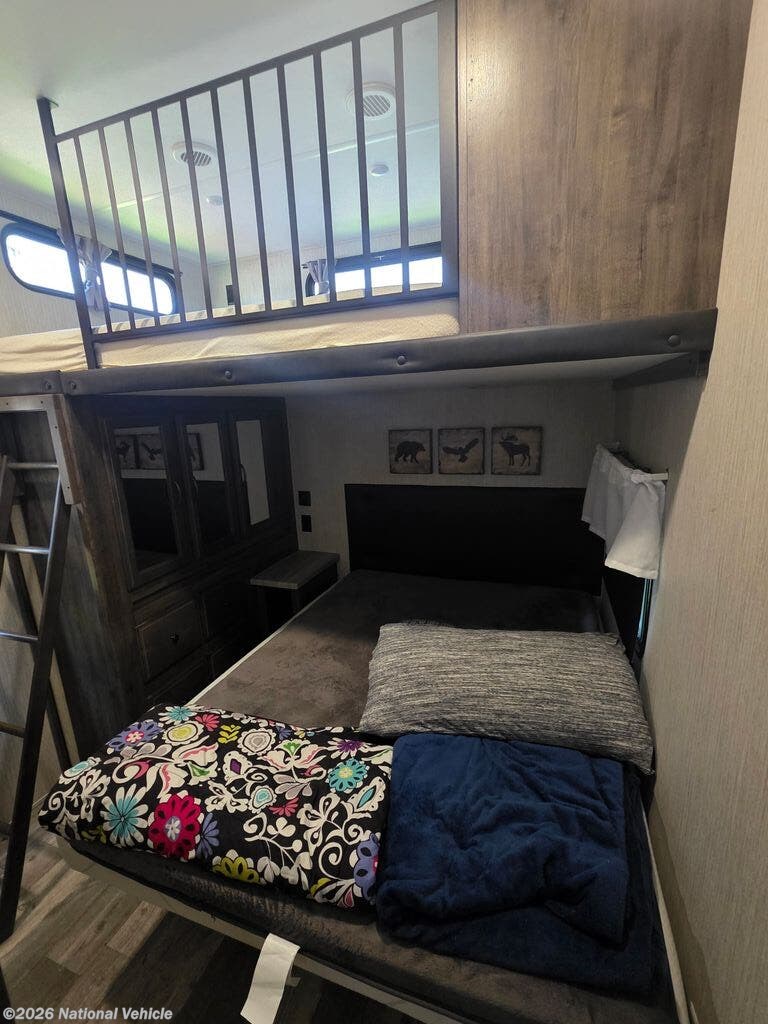 One of the standout features of the 3440BH is its private rear bunkhouse, complete with multiple bunks, a sleeper sofa, storage cabinets, and its own half bath. This dedicated space is ideal for kids, guests, or even a home office setup, giving everyone their own place to unwind.