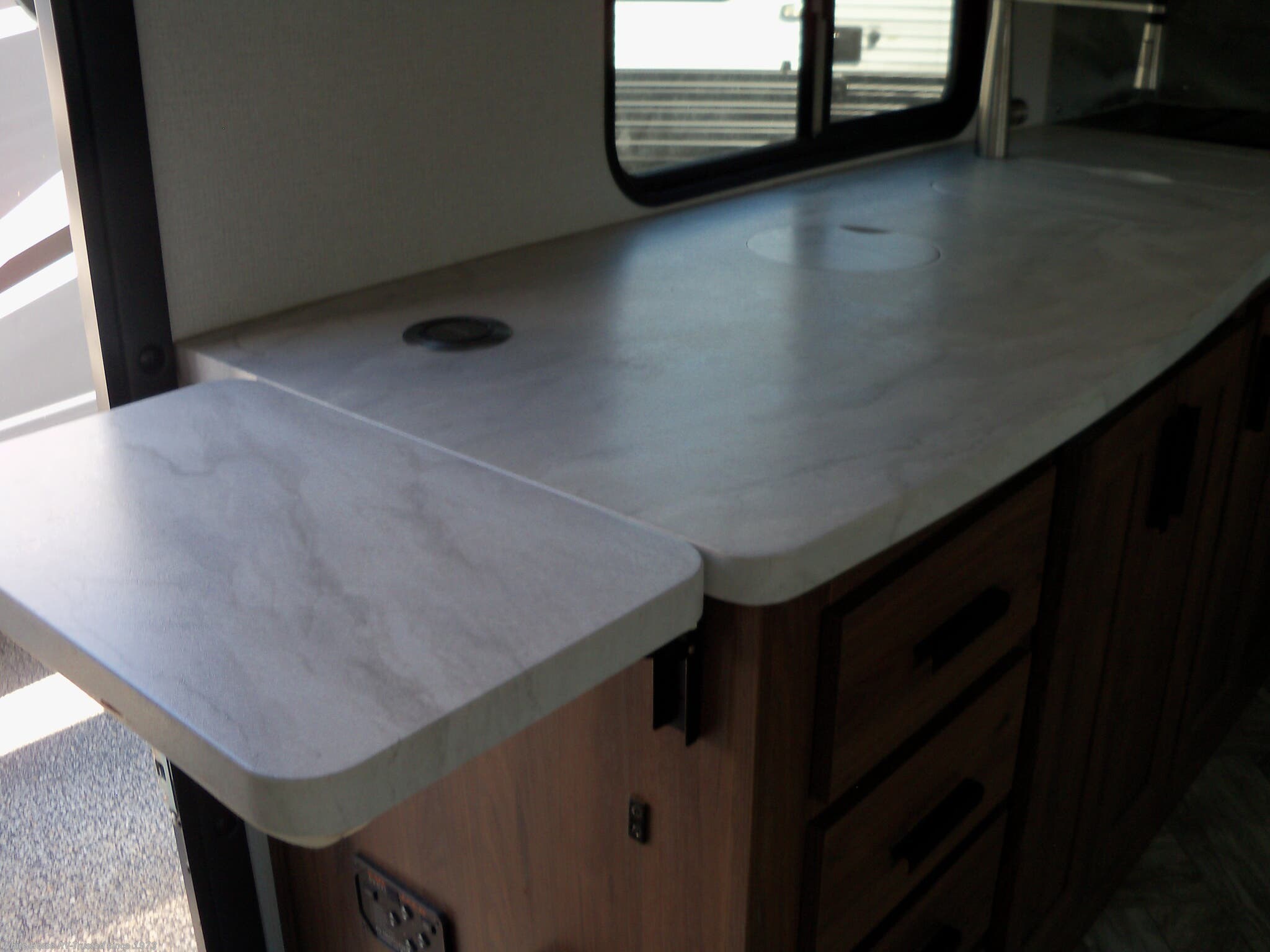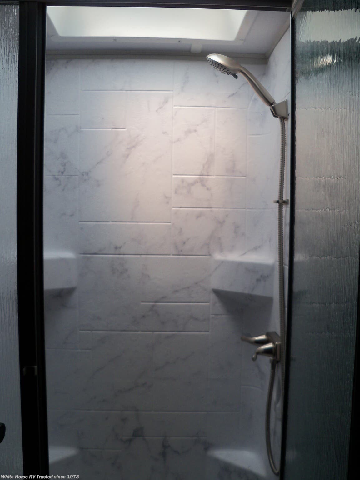 Automatic Leveling Jacks, Awning, Backup Monitor, Exterior Speakers, External Shower, Hitch, Ladder, Outside Entertainment Center, Power Roof Vent, Skylight, Slideout, Slide-out Awning -