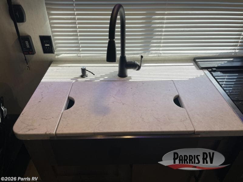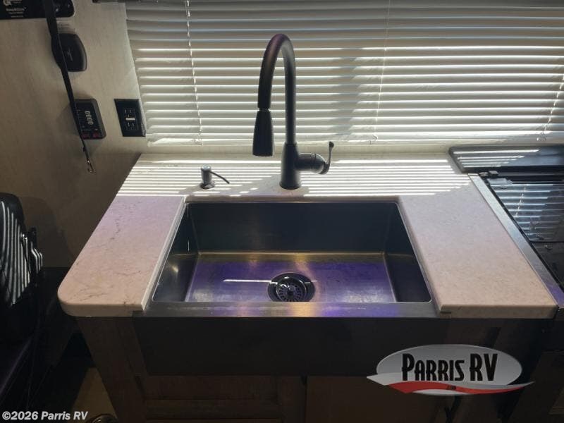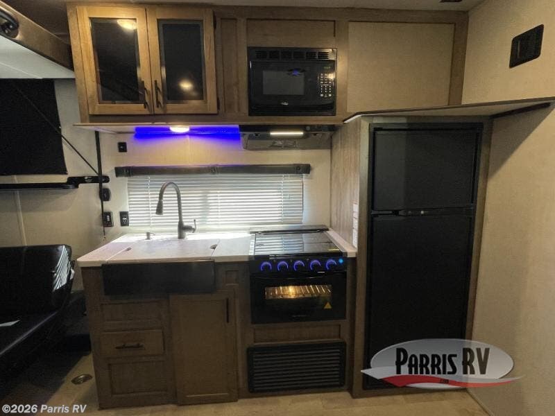 The Vengeance Rogue by Forest River is a budget-friendly toy hauler that you can really get on board with! Some of the features within the Rogue Platinum Package are the zebra shades that will keep light out, a glass shower enclosure, ultracold heated holding tank pads, and much more. There is an outside shower with hot and cold water so you can fill the dogs water bowl or wash the mud from your riding gear, and the enclosed underbelly will allow you to extend your camping season. You will love the look of the residential black stainless steel farm sink, along with the seamless countertops and LED interior lighting with accents.