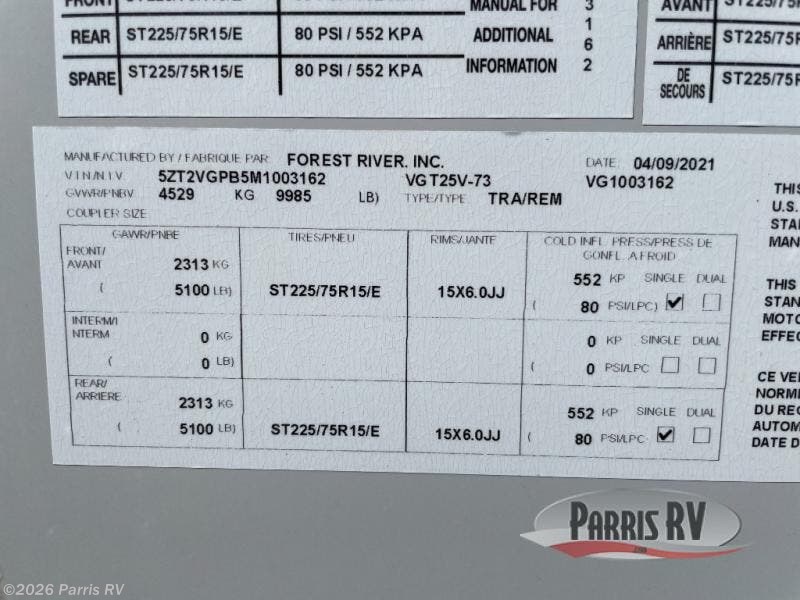Request More Info on this 2021 Forest River Vengeance Rogue 25V Offered for sale by Parris RV