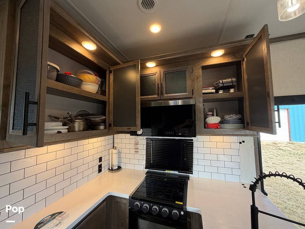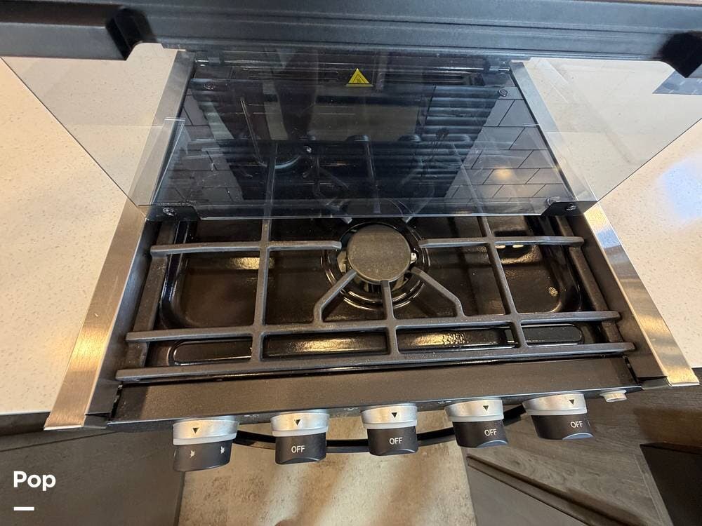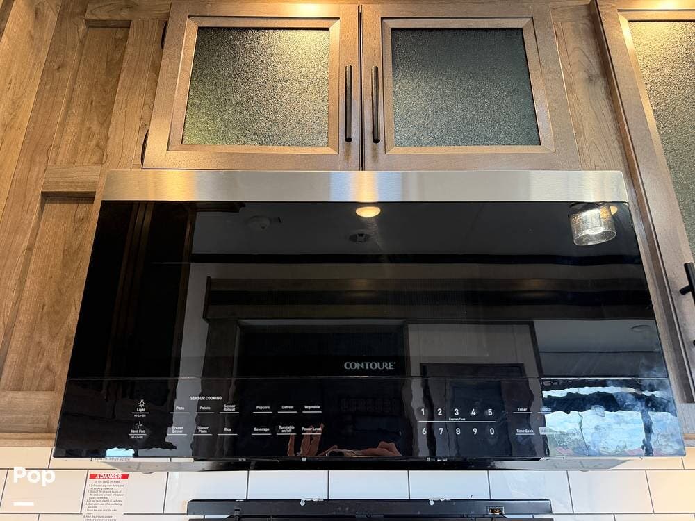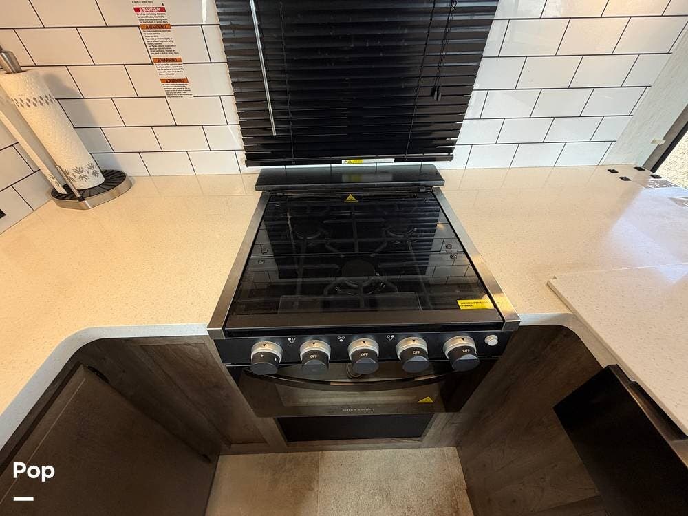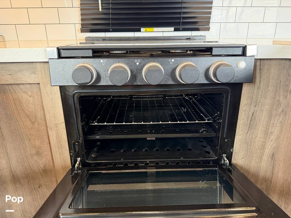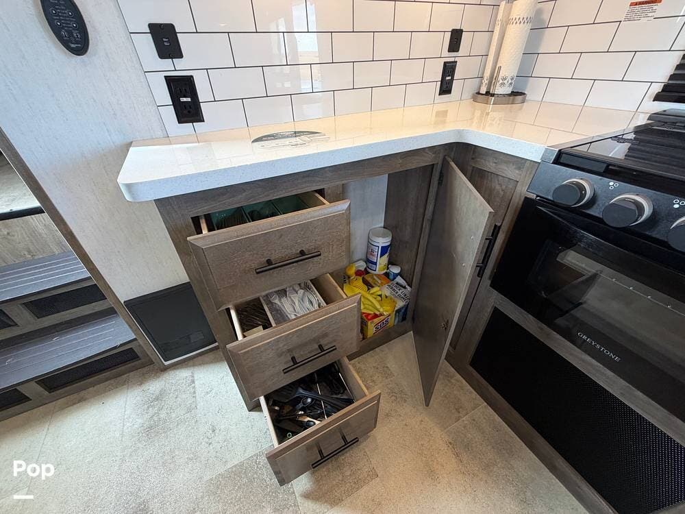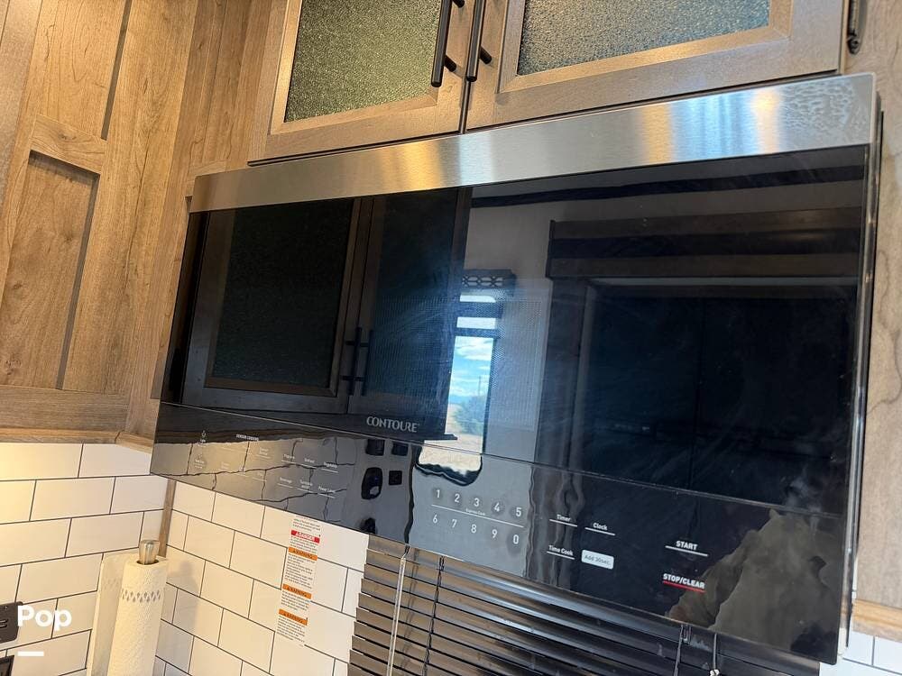 Inside, you'll find residential-style amenities, including a king-size bed in the master suite, a spacious full bathroom, and a modern kitchen equipped with a residential refrigerator, solid-surface countertops, a three-burner stove, oven, and microwave.