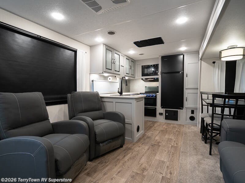 Each Vibe travel trailer by Forest River includes Hyper Lyte construction and a durable laminated "Aluma Frame" for years of use. The heated and enclosed underbelly allows you to extend your camping season, and the LED-lit exterior speakers will keep the party going as you grill outdoors and visit with family. Inside, you'll find LED lights to keep everything bright and open, a Bluetooth stereo, roller shades for your privacy, and many more amenities per region. These models also include cable and satellite prep and a digital TV antenna with a booster so you can stay connected to the outside world if you choose. Make the easy choice and choose a Vibe travel trailer today!