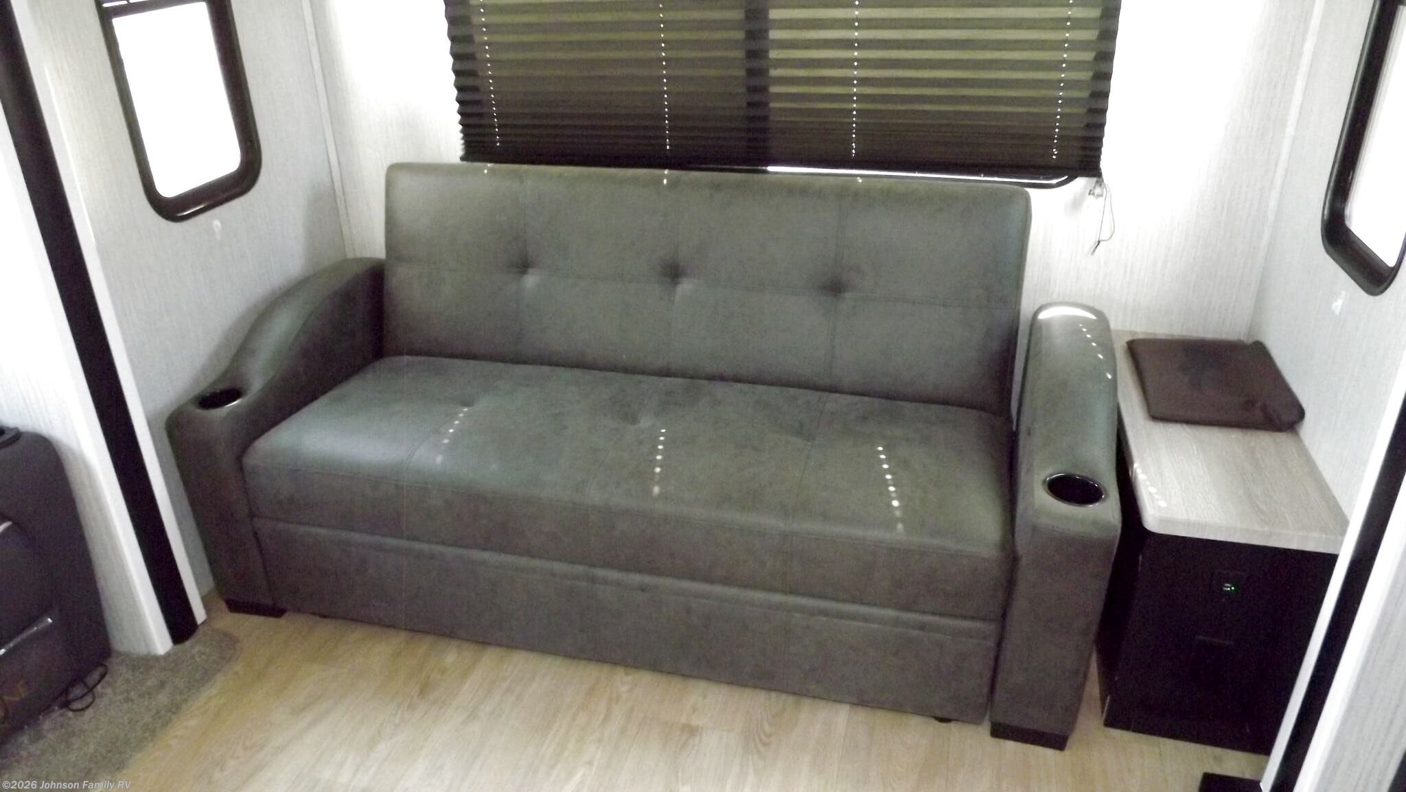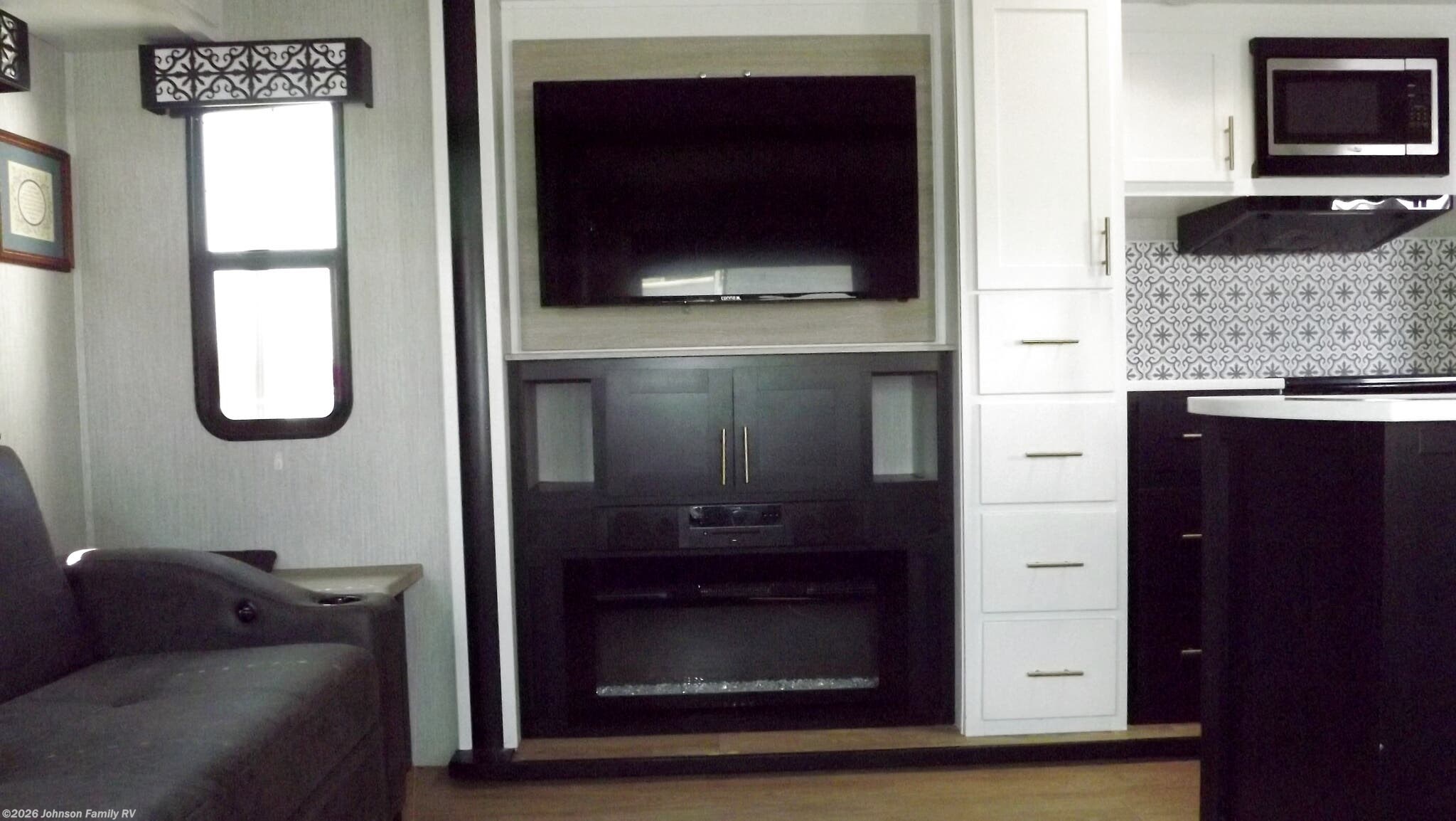 The 336RLS floorplan highlights a thoughtful arrangement: a front bedroom for privacy and rest, a mid kitchen with a convenient island for meal prep and socializing, and a rear living area with entertainment options. The design includes three slideouts to maximize living space, creating a welcoming hub for family meals, movie nights, and outdoor connections. This layout ensures easy navigation and a spacious feel whether you’re parked at a campground or enjoying a weekend road trip.