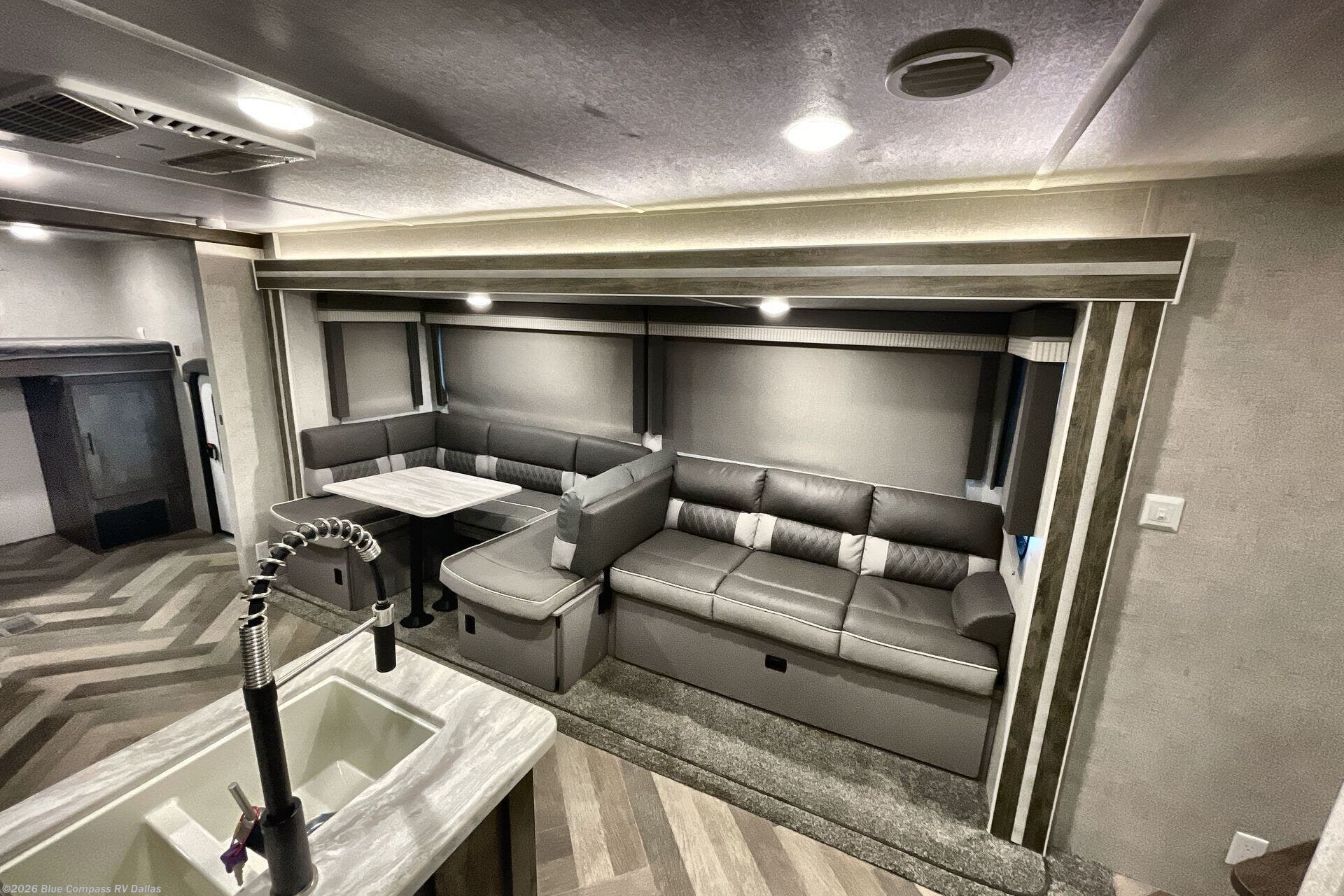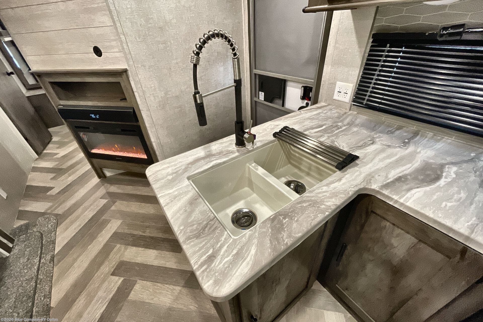 When you're ready to upgrade your RV to a unit with more sleeping space and comfort, choose this Wildwood travel trailer, and you'll never look back. After setting up camp, put out the large slide and prepare lunch indoors or outside at the exterior camp kitchen, and the 18' power awning will shade you from the sun. The kids will find all their snacks in the walk-in pantry, and they can grab a cold drink from the 11-cubic foot refrigerator. The U-shaped dinette is a part of the Versa Lounge, and it will provide comfortable seating space. This model features a rear private bunkhouse with a Versa queen bed and two Versa bunks, and you will love the front private bedroom that includes dual bedside closets.