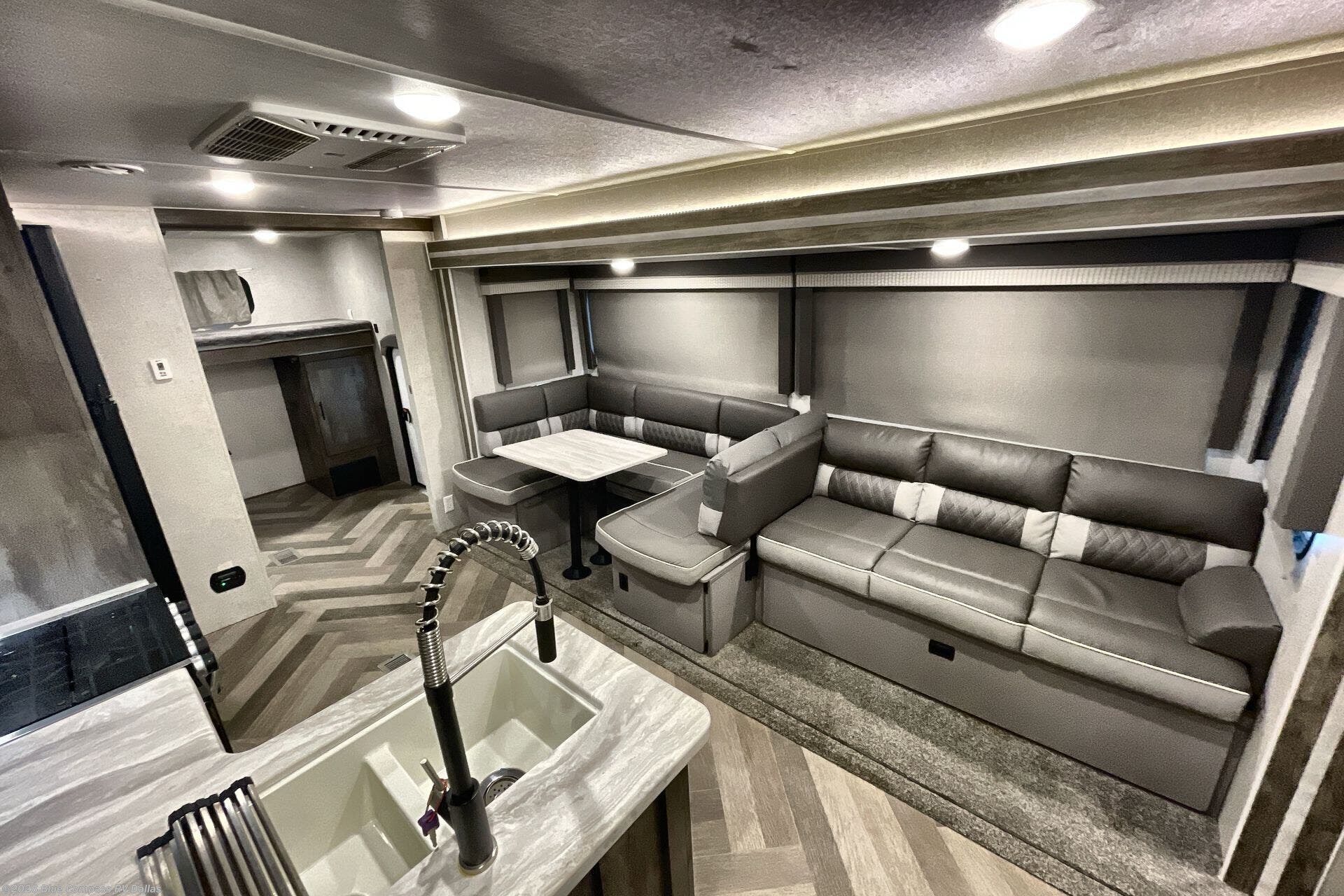 Forest River offers you the highest quality and the best components in its Wildwood travel trailer! The fully walkable one-piece roof is ultra reliable, and the rest of the construction is just as dependable with the powder-coated I-beam frame, cambered chassis, R-7 fiberglass insulation, nitrogen-filled tires, and triple-seal slide-out system. The Wildwood is not only full of quality, but it is also full of style with its herringbone luxury vinyl flooring, shiplap wall board, upgraded designer furniture, high-gloss exterior metal, and seamless countertops. The Wildwood also comes with some extra features that will make your life more comfortable, like the exterior speakers with blue LED light, the tablet-compatible USB ports, the residential vanity with shower caddy, and true stabilizer jacks with JT's Strong Arm.