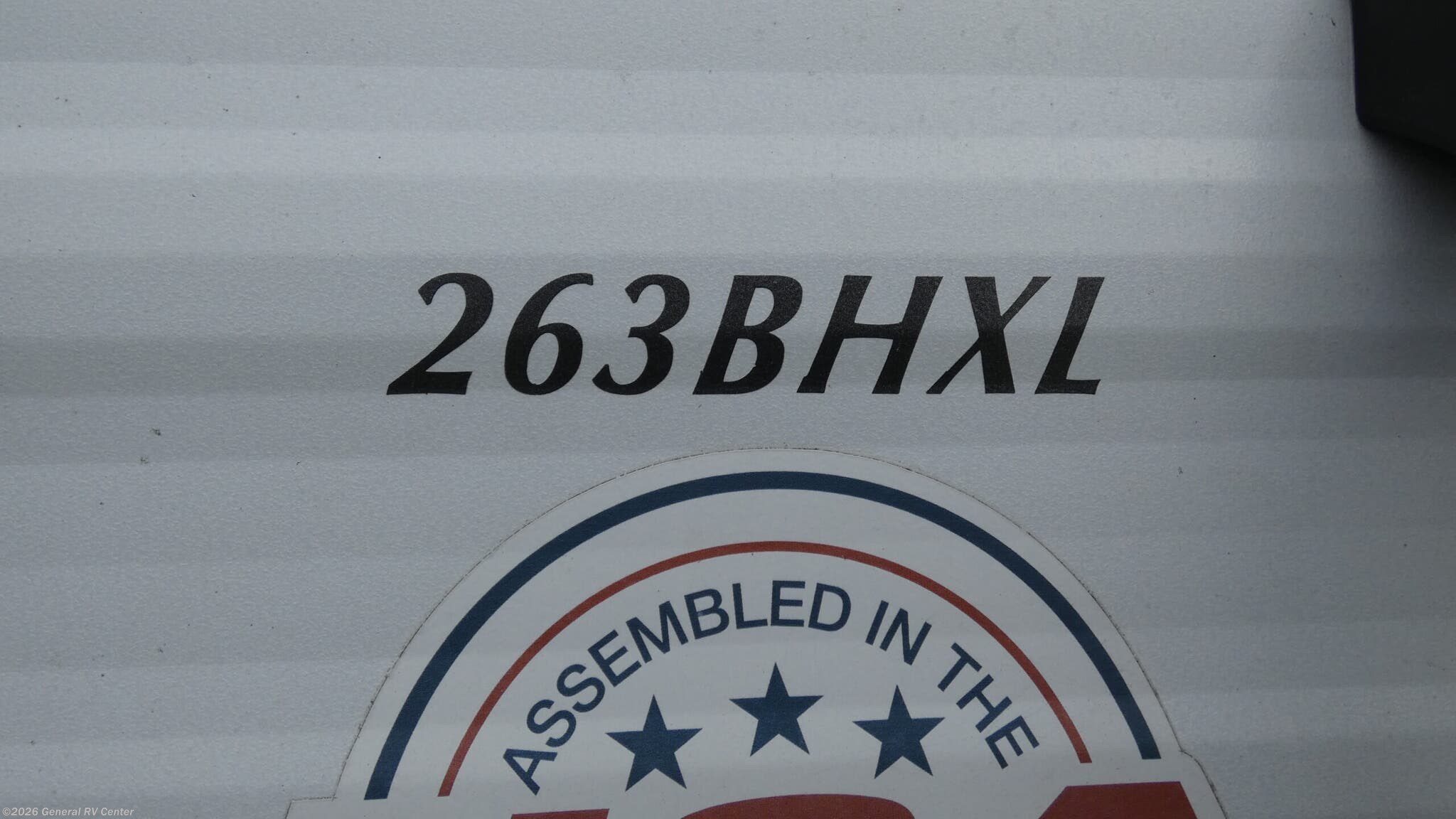 **Forest River Wildwood X-Lite travel trailer T263BHXL highlights:** - Double Entry Doors - Sofa - Rear Corner Bathroom - Pass-Through Storage Come see just how fun and easy camping can be with this single slide Wildwood X-Lite T263BHXL travel trailer. This model has double entry doors for easy access into the combined kitchen/living area or the rear door leads into the bathroom. Your kids will enjoy their own space with the rear set of bunk beds. Within the slide there is a U-shaped dinette as well as a sofa where you can enjoy your meals or reminisce about the day, and at night both the sofa and dinette easily convert into additional sleeping space. Along the front of this trailer there is a private bedroom with a queen bed for you to enjoy a good night's rest. On the outside there is a pass-through storage area, plus enjoy the shade from the awning! When you are ready for some time away from home, but are looking to enjoy comforts from home, then choose a Wildwood X-Lite travel trailer! These models are ideal for any camping excursion and for any family - from the experienced camping couple to the family with multiple kids - there is a trailer for you! Along the exterior you will find an aerodynamic front profile, two exterior speakers to crank up the tunes, and a pass-through storage area on select models. These 8' wide trailers offer a unit that will last with the high definition countertops, the E-Z lube axles with self adjusting brakes, and the LP quick disconnect. Inside there is a double door refrigerator, a Bluetooth stereo with a remote, extra large kitchen overhead cabinets, and two gas struts under the main bed. Unleash your inner "wild" with a Wildwood X-Lite toy hauler travel trailer!