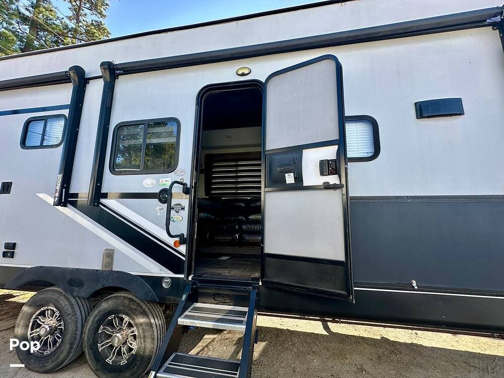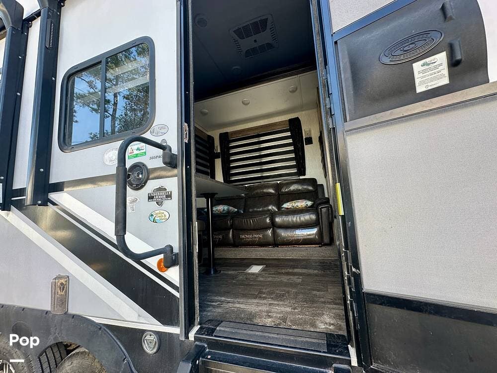This one-owner 2021 Wolf Pack 335PACK13 Platinum by Forest River combines luxury, comfort, and adventure in one impressive fifth wheel. Designed for those who live for the open road and the great outdoors, it features a spacious 13-foot-by-8-foot garage -- perfect for toys, gear, or additional living space. The garage includes a third air conditioner to keep things cool, no matter where your travels take you.