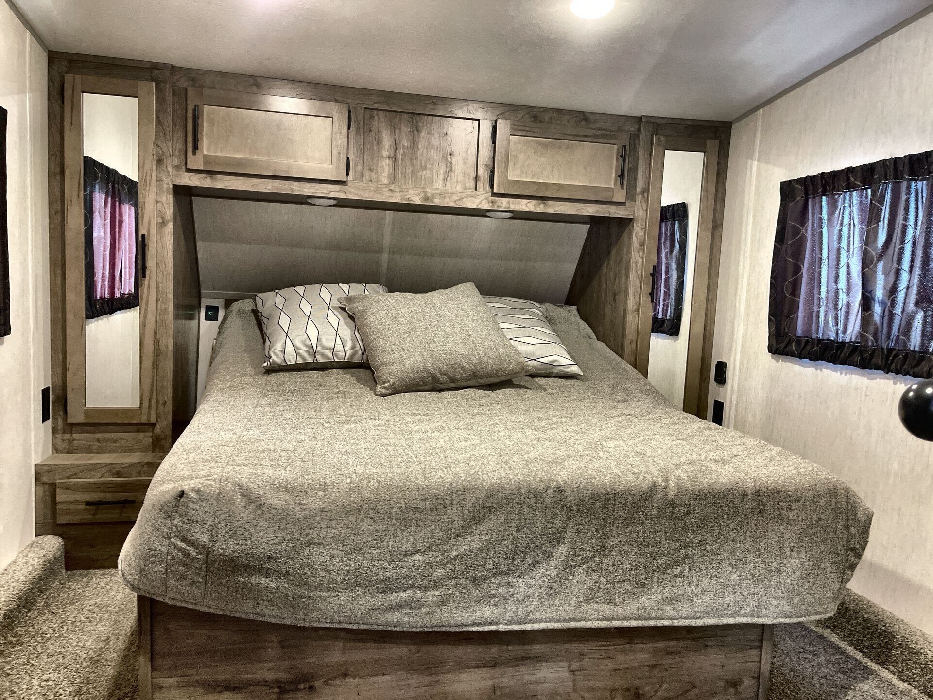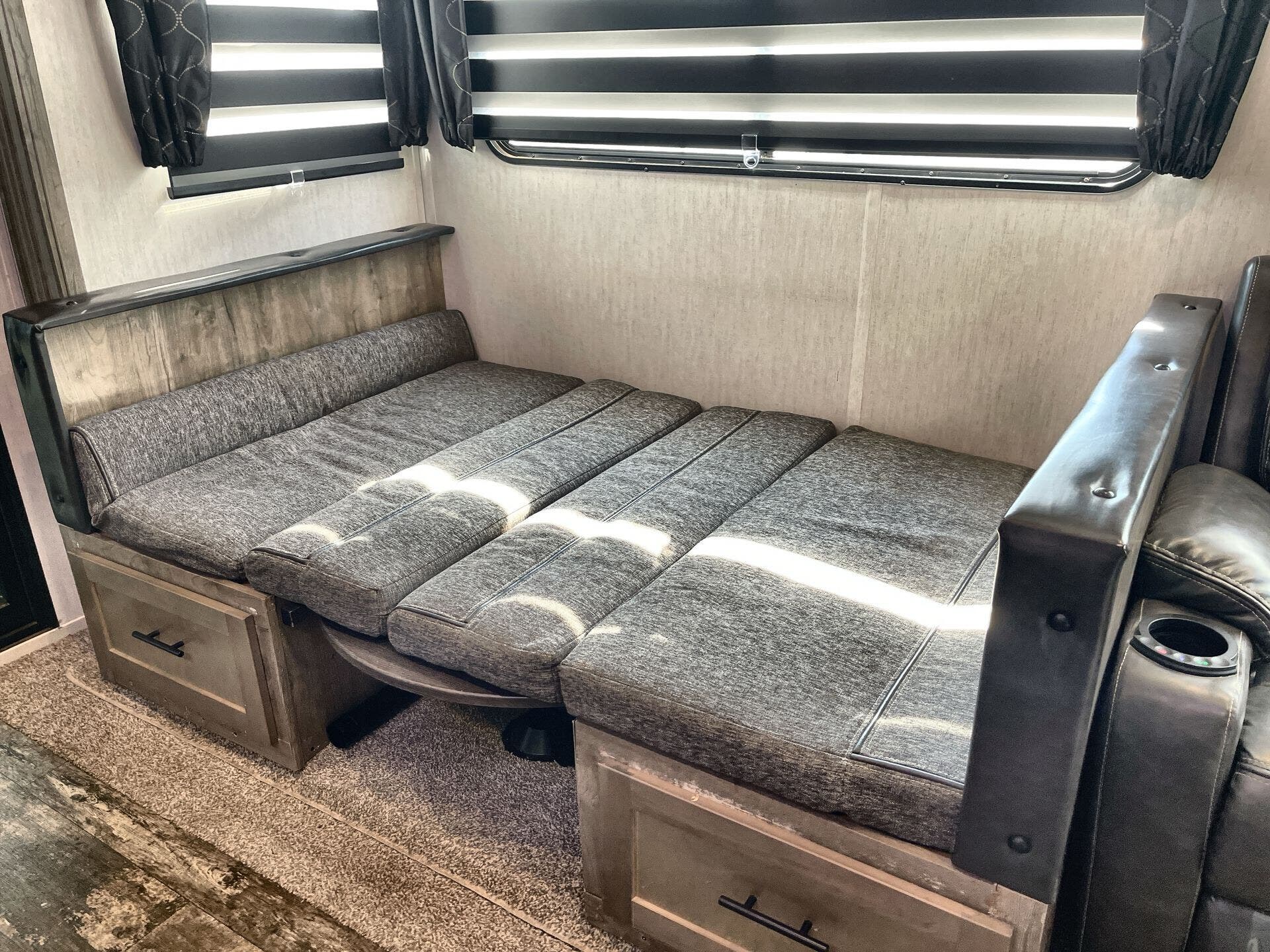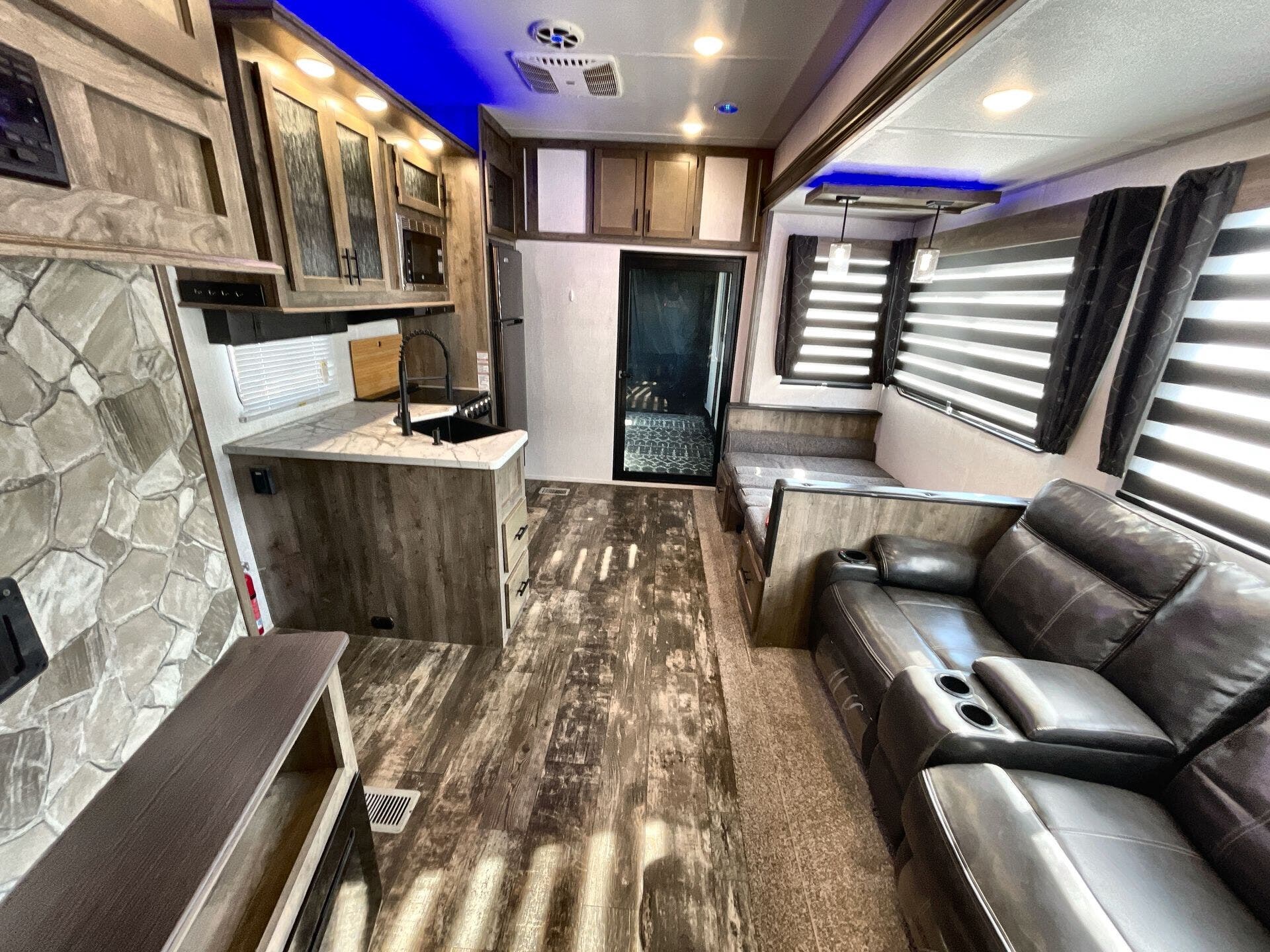 Discover the ultimate combination of comfort, convenience, and rugged outdoor capability with the 2021 Forest River Wolf Pack 315PACK12 fifth wheel. This towable RV is built for families and groups who crave spacious living without sacrificing the freedom of the open road. With a thoughtfully designed floor plan that places the front bedroom, mid bath, mid kitchen, and mid living area in harmonious balance, this travel trailer delivers stylish, homelike living inside a durable, easy-to-tow package.