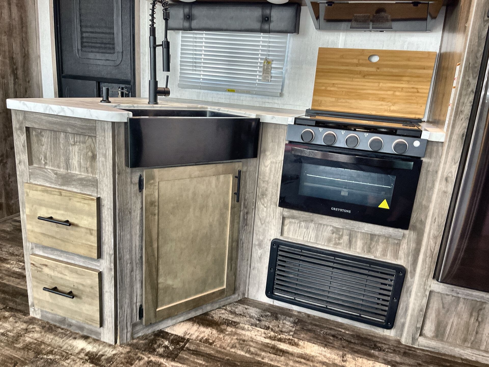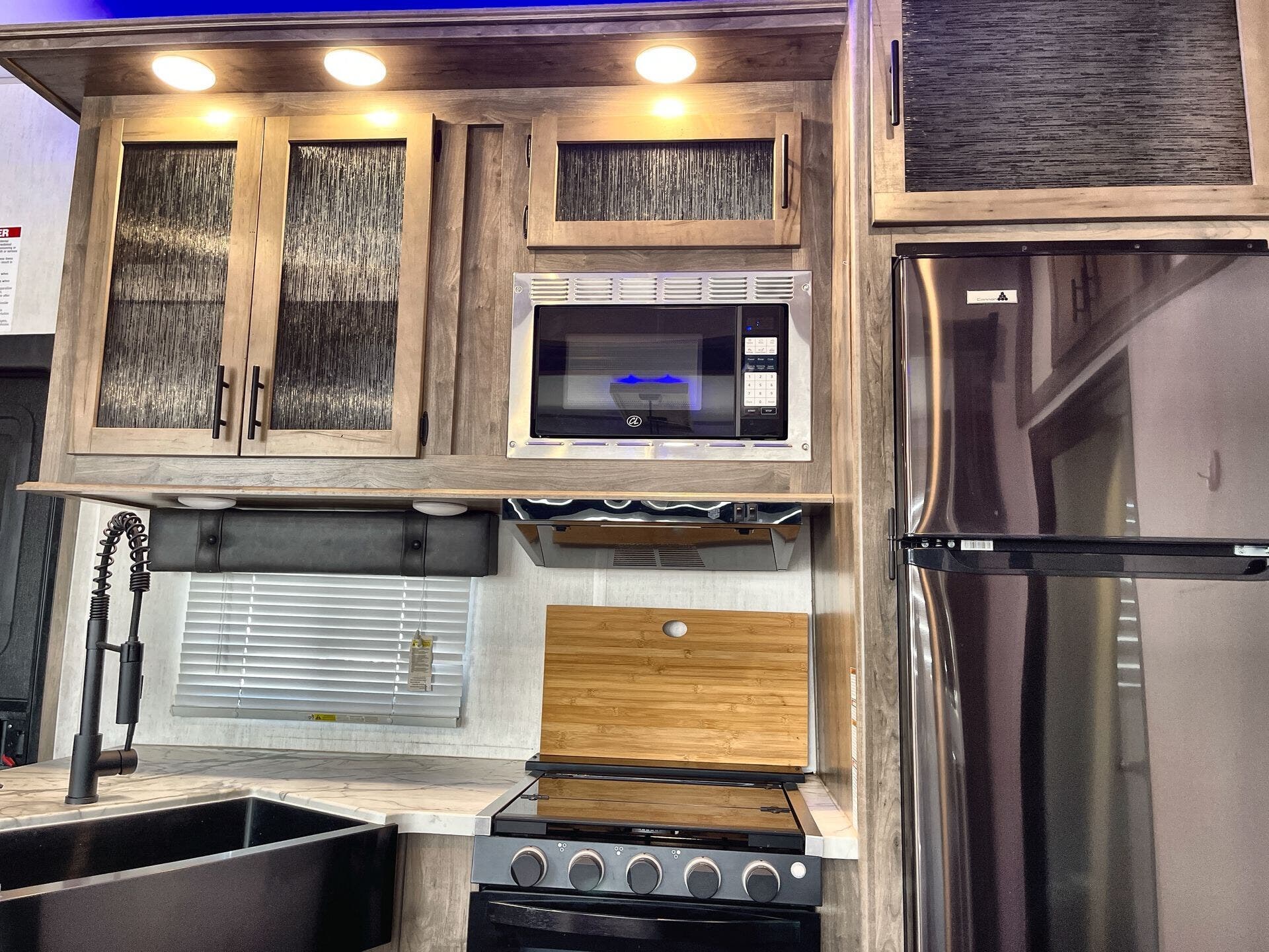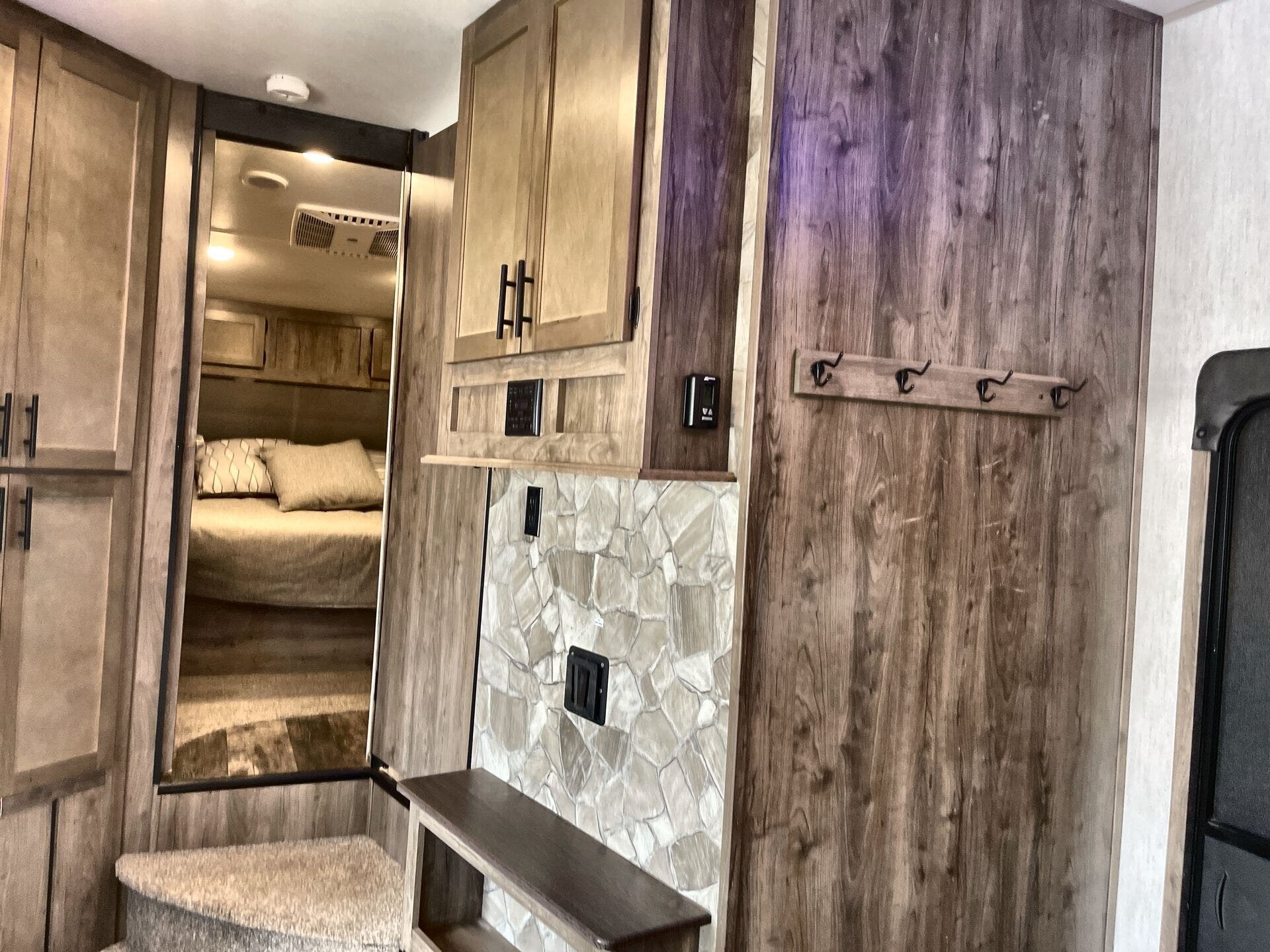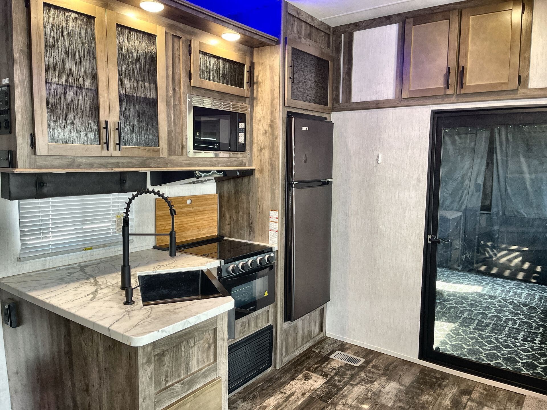 Discover the ultimate combination of comfort, convenience, and rugged outdoor capability with the 2021 Forest River Wolf Pack 315PACK12 fifth wheel. This towable RV is built for families and groups who crave spacious living without sacrificing the freedom of the open road. With a thoughtfully designed floor plan that places the front bedroom, mid bath, mid kitchen, and mid living area in harmonious balance, this travel trailer delivers stylish, homelike living inside a durable, easy-to-tow package.