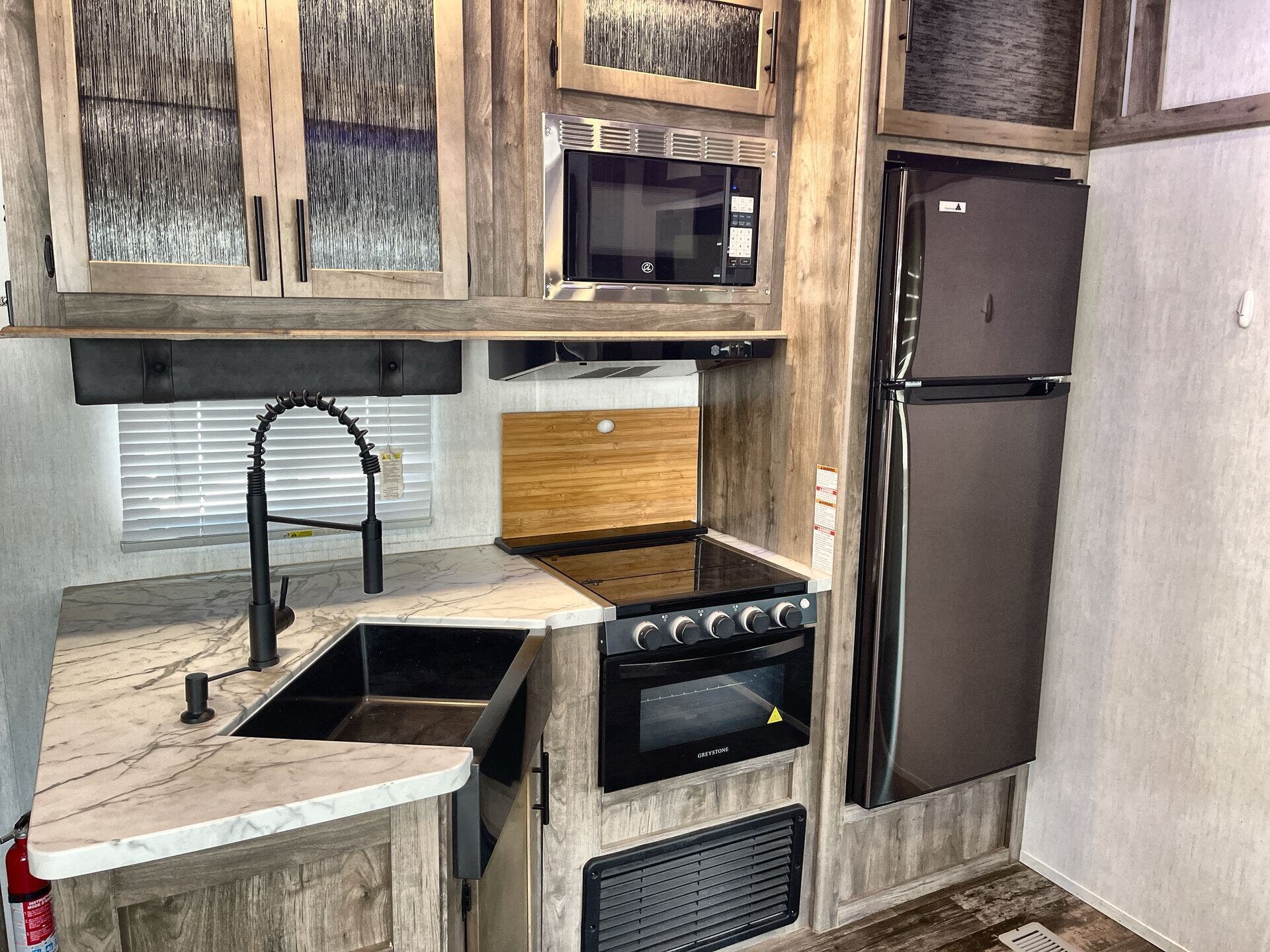 - Microwave, Refrigerator, and Stove Top Burner for flexible meal prep
