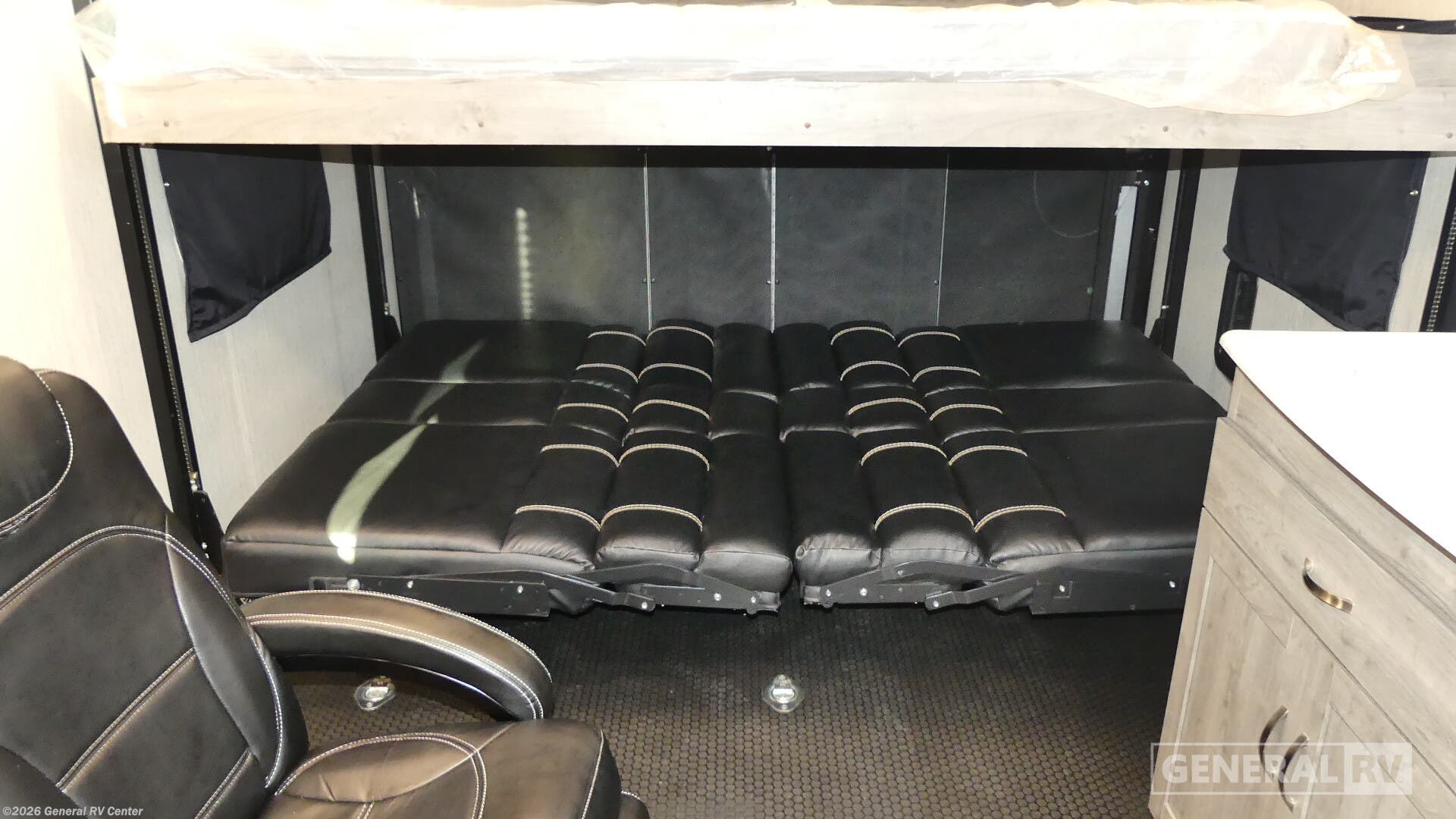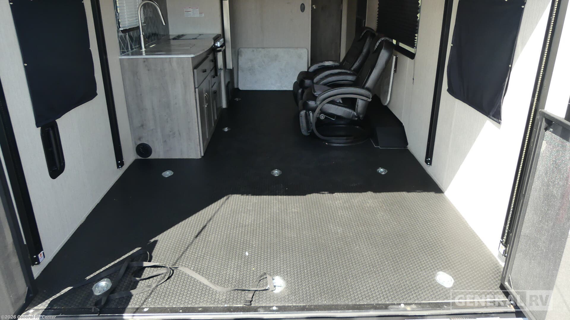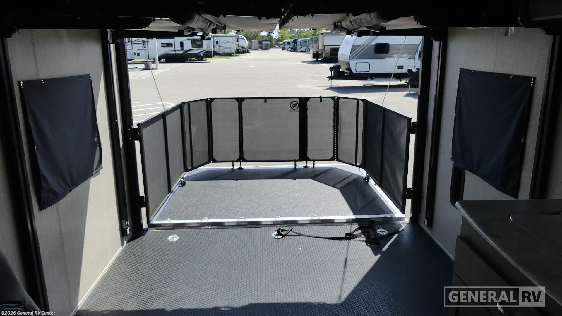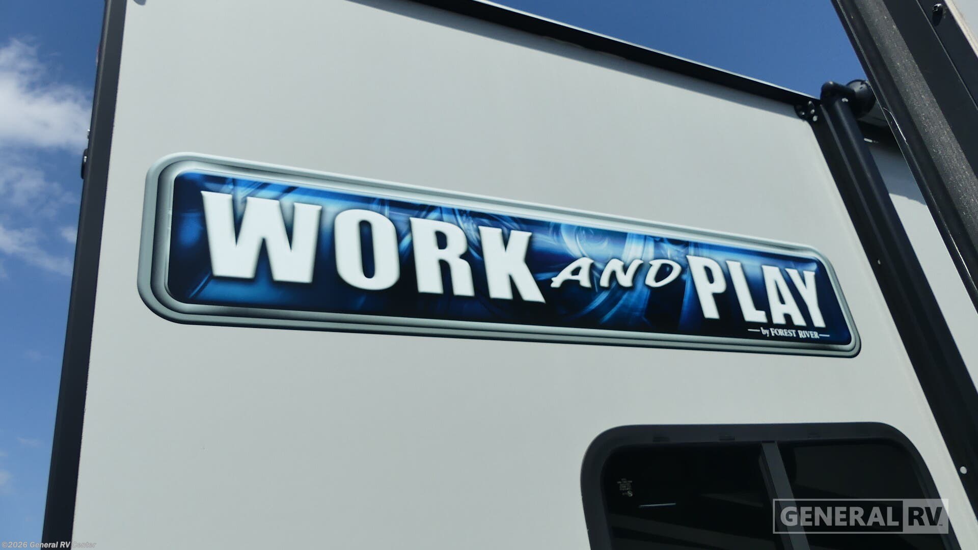 Forest River Work and Play toy hauler 27LT highlights: Front Master Bedroom Pass-Through Storage 102" Wide Body Construction Shower Skylight 39" LED HDTV Get ready for a weekend of trail riding with buddies in this toy hauler! You'll have a total of 15' 9" of garage space to load up your dirt bikes or kayaks, and there are two roll-over sofas with a dinette table so you can eat lunch before heading out. The outdoor spray port will allow you to wash off the mud from your tires when you return, and you can choose the optional 30 gallon fuel station so you'll be ready to go the next day. This model also includes a dual entry bath that will create a front master bedroom you are sure to love. Here, you'll sleep soundly on the king bed, and you can keep your clothes wrinkle-free in the dual shirt closets! Each Work and Play toy hauler by Forest River is built tough with a mega rail powder coated chassis, a one-piece Tufflex PVC roof membrane, and a fiberglass front cap with rock guard. Towing is made hassle-free with the heavy duty Dexter axles with Nev-R-Adjust brakes and nitrogen filled tires. You will find many convenient features, such as a Winegard Air 360 and TV antenna, an outside spray port, and magnetic compartment door catches to store your riding gear. These toy haulers also include shaker style cabinets and doors, a residential bedspread, multiple USB ports for all your electronics, and many more amenities!
