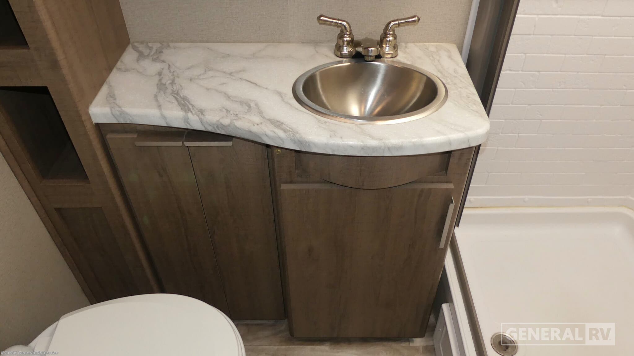 Grand Design Imagine XLS travel trailer 22MLE highlights: Queen Bed Theatre Seating Booth Dinette Wardrobe Cubby Storage Unobstructed Pass-Through You and your spouse will love this spacious trailer with a large slide giving you lots of floor space to walk from the front to the back! The cook will enjoy the rear part of the kitchen with windows and a stainless steel sink, and the appliances are within the slide out next to the theatre seats with cupholders. The full bathroom will keep everyone refreshed before bedtime, the booth dinette offers a dining and gaming area indoors, and the privacy curtain can be closed to create a front bedroom at night. You will have a walk-around queen bed and your own side to put your clothing and such. The HD TV is on a swing-arm for easy viewing from the furniture or the bed. And you can enjoy relaxing outside under the electric awning on those beautiful evenings. Today's medium duty trucks and SUV's can tow one of these Grand Design Imagine XLS travel trailers or toy hauler! With the 4-Seasons Protection package, you will find maximum insulation, heating power, and function with an EvenFlow heating system without vents in the floor to collect dirt and debris. You can also control your unit at the touch of a finger with the Compass Connect system. They have been constructed to a superior standard with features like a roof mounted solar prep, a power tongue jack, a ducted low profile A/C, and a marine grade telescoping dinette pedestal. Walk around freely with 78" maximum headroom, and check out what else these units have to offer!