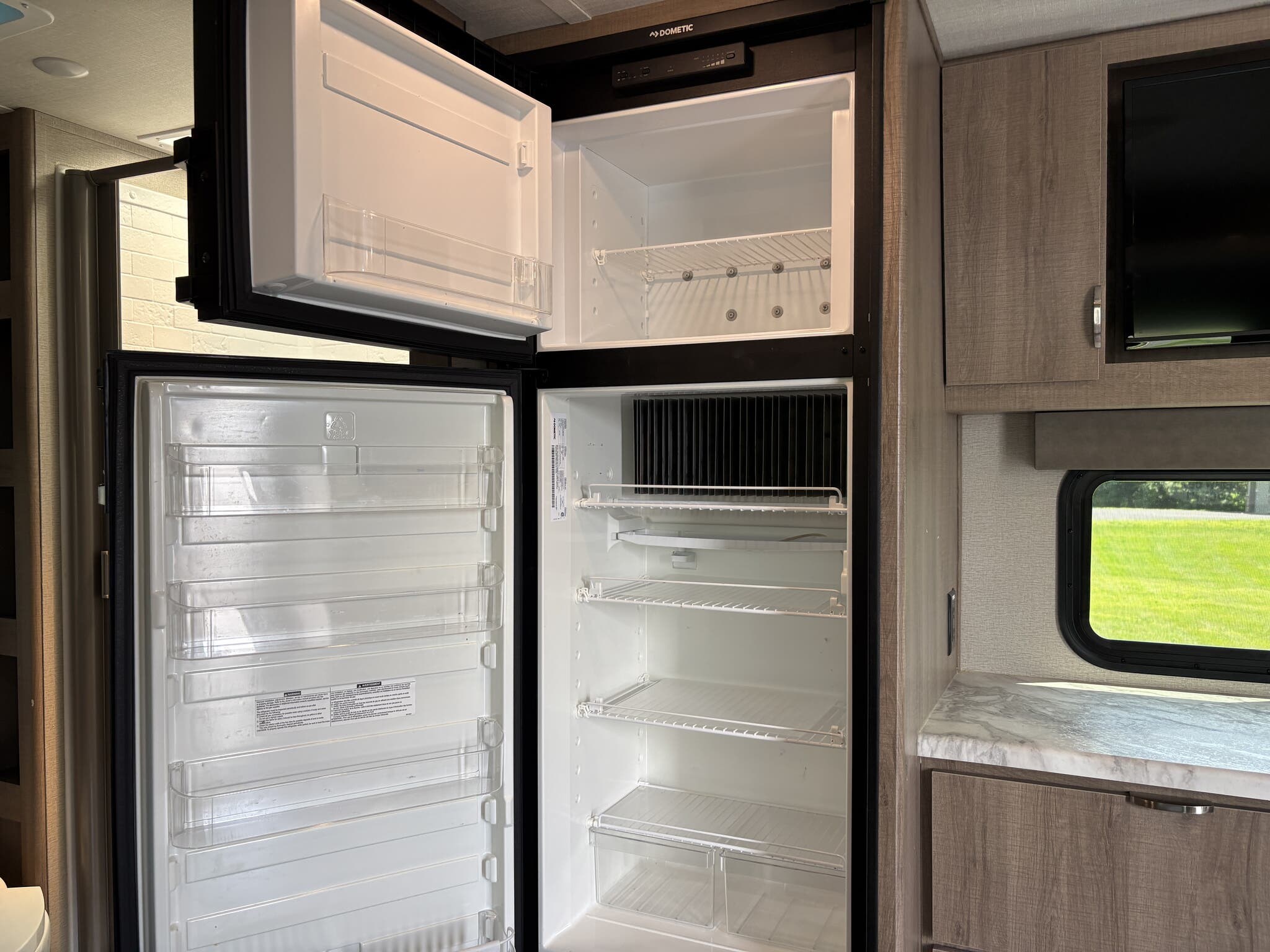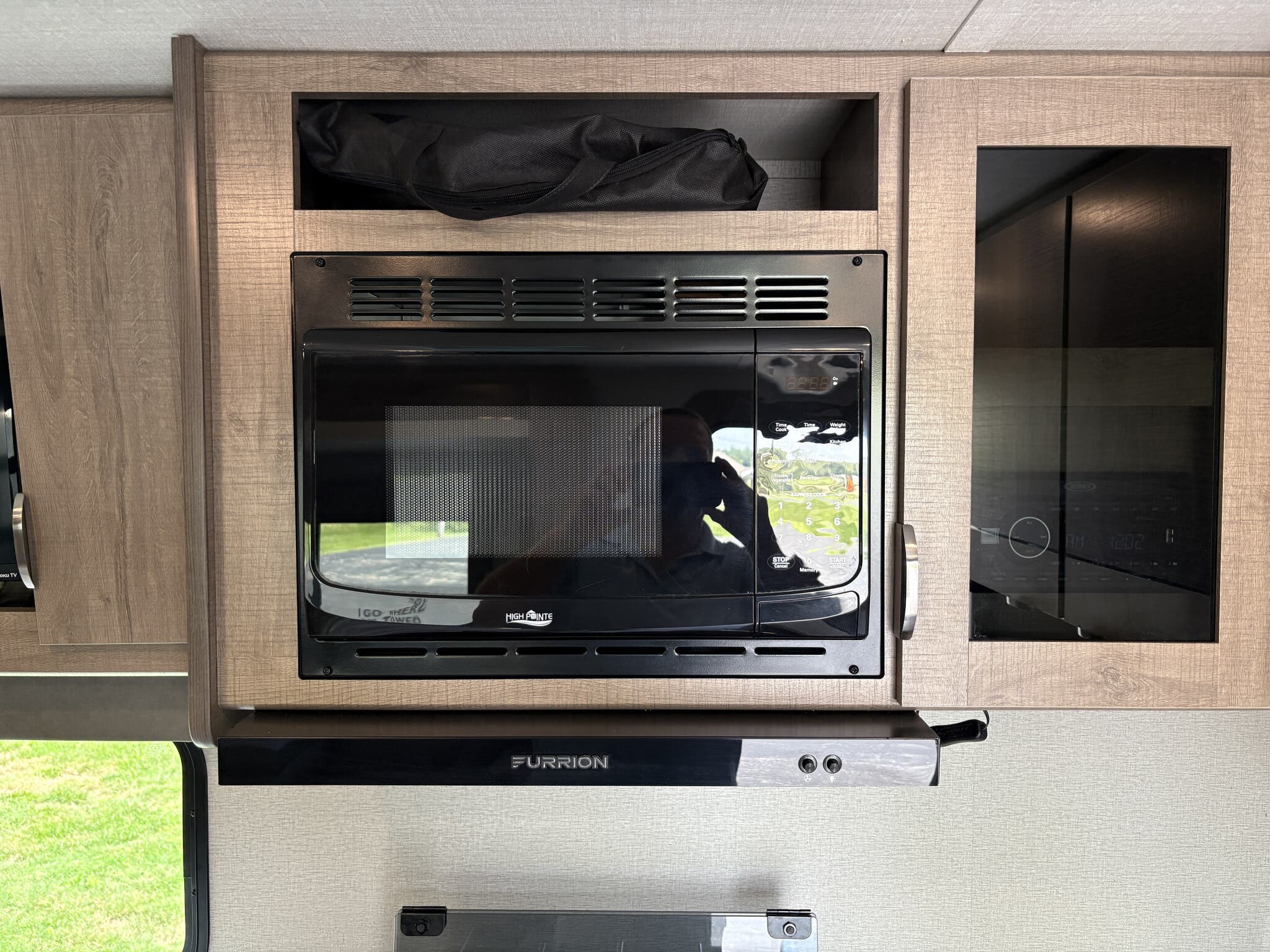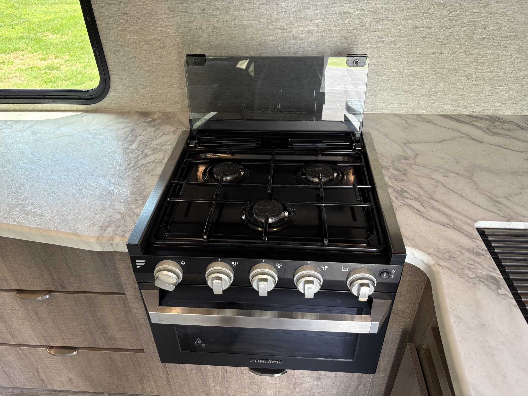 The interior of the Grand Design Imagine XLS is thoughtfully designed for convenience and relaxation. It accommodates four sleepers comfortably with a queen-sized bed, perfect for restful nights after your adventures. The RV is equipped with a booth dinette, ideal for meals or indoor activities. Modern amenities include a microwave, oven, refrigerator, stove top burner, and water heater, making meal prep simple and efficient.