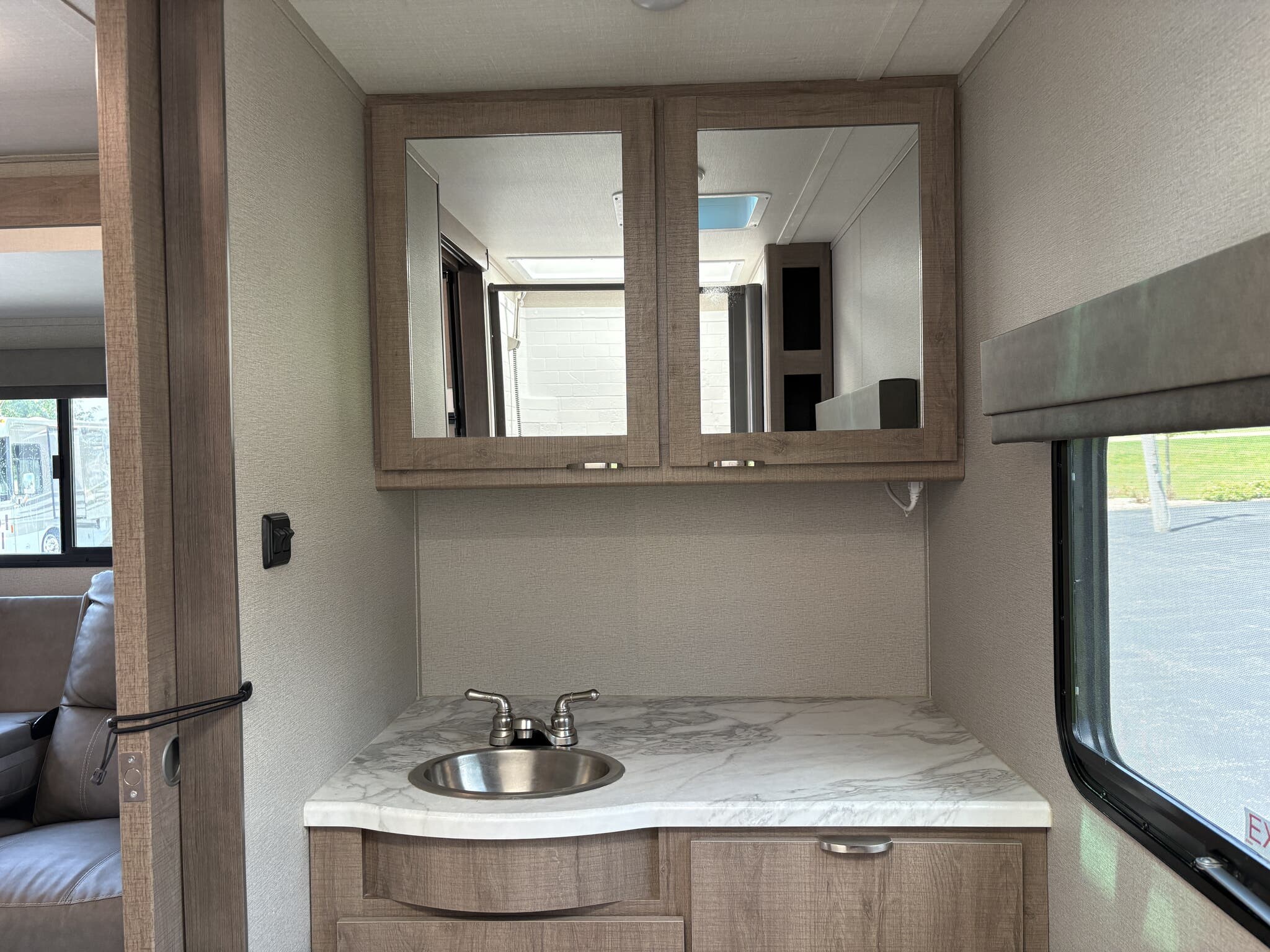 Measuring approximately 25 feet 11 inches in length and 10 feet 5 inches in height, this travel trailer is designed to be easily towed by most SUV and truck models. It boasts a gross vehicle weight of 6,995 pounds and a payload capacity of 1,870 pounds, ensuring a safe and manageable towing experience. The model includes a single slide-out, adding extra interior space for relaxing and living comfortably on the road.