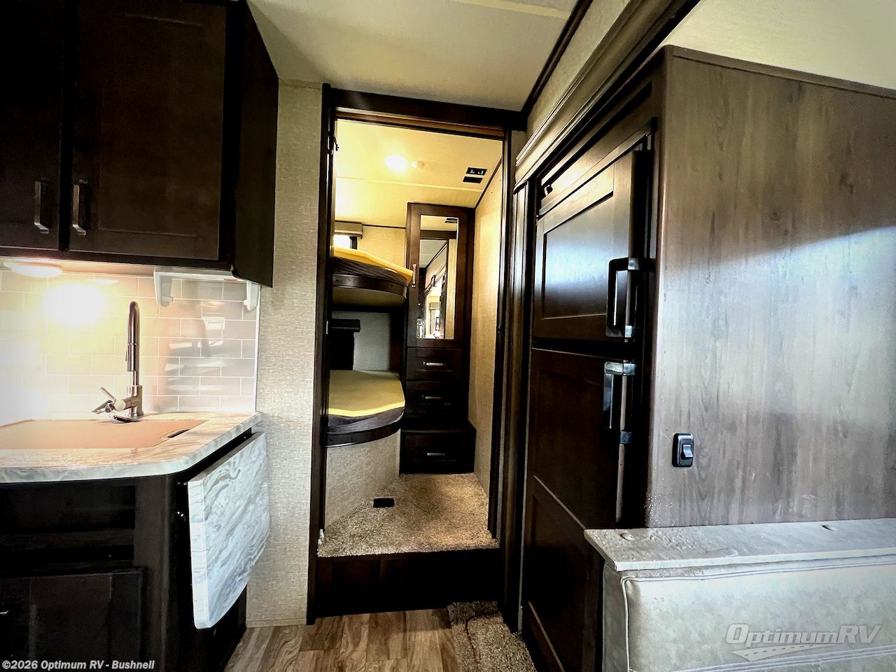 If you're looking for an efficient bunkhouse, then you need this Reflection 150 Series fifth wheel! The exterior rear storage compartment lets you bring all of your favorite camping gear, and the thoughtful storage near the bunks not only has a wardrobe closet but also a clever step storage area. You will enjoy eating your meals and playing card games at the U-shaped dinette, or you can switch it out for the optional 78" theater seating instead. Grab your favorite beverage from the 8-cu. ft. refrigerator and relax on the tri-fold sofa while you watch your favorite movie on the 40" LED TV. The full bathroom has a shower with a skylight for natural lighting as you get ready each morning, and is also has a linen closet to keep your towels close by.