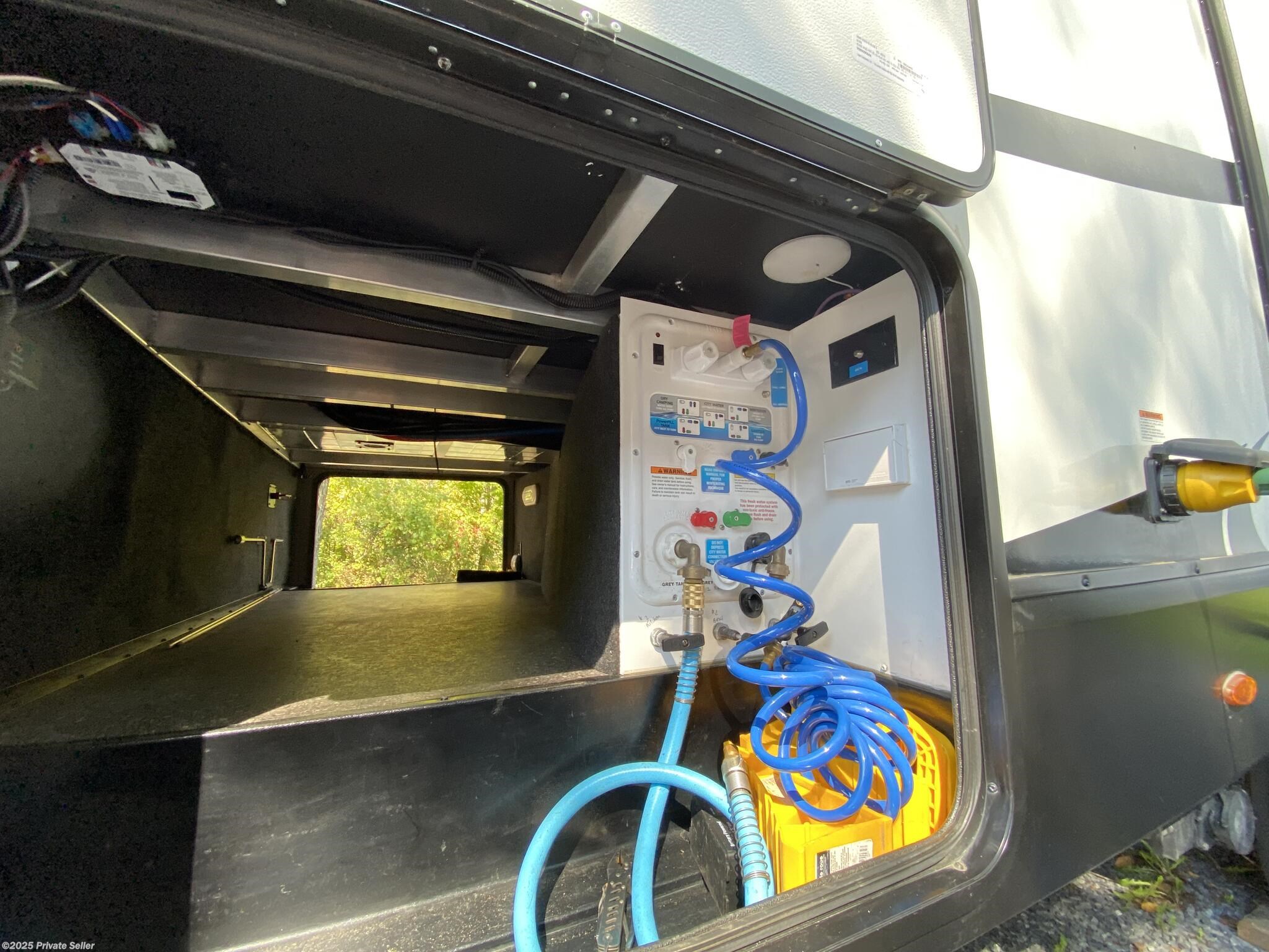 Included: Fresh water system with all hoses and fittings; 50 amp Electric cable; “House power” converter; 30 amp connector with adapter; 2 12-volt batteries; Black water system with 4 waste hoses and all fittings (including a rinse hose); Hard-wired surge protector; Slide cover; New 12 ply tires in 2024 and tire covers; King Pin tripod + slide-out supports; 3-burner gas range; Microwave; plates, cups, mugs (service for 4); Full set of cookware; Turning Point pin box; 4 season Arctic insulation package; Auto-leveling system (electric) - Lippert); Wireless cameras on sides and back; Misc chocks and blocks; Non-smoking, one owner.