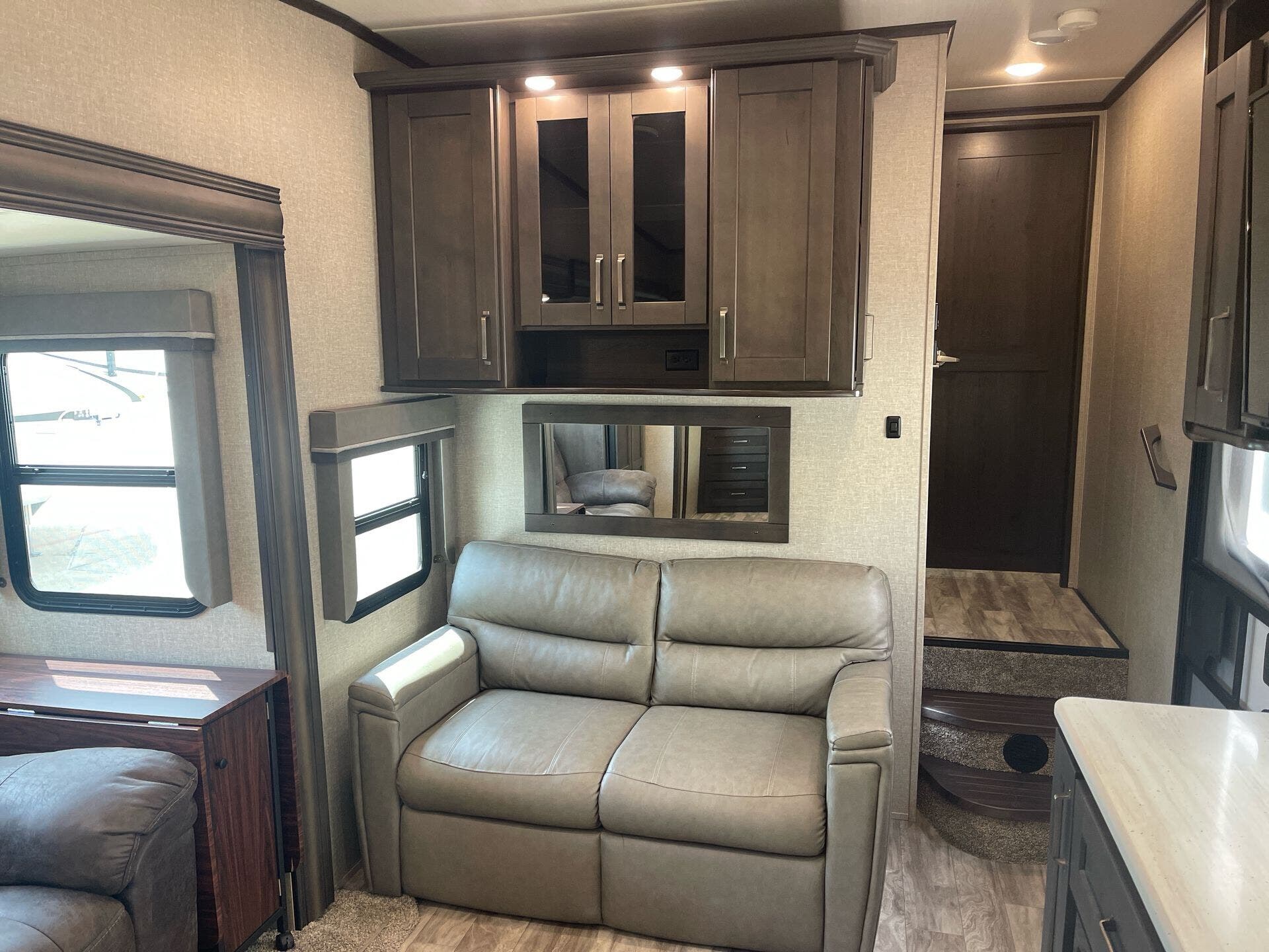 This fifth wheel includes 2 slideouts to open up the interior for everyday comfort. At a total length of approximately 34 feet 8 inches, it delivers a well-balanced footprint for weekends away or extended adventures. The exterior height is about 12 feet 3 inches, helping maintain a stable, confident setup wherever you park.