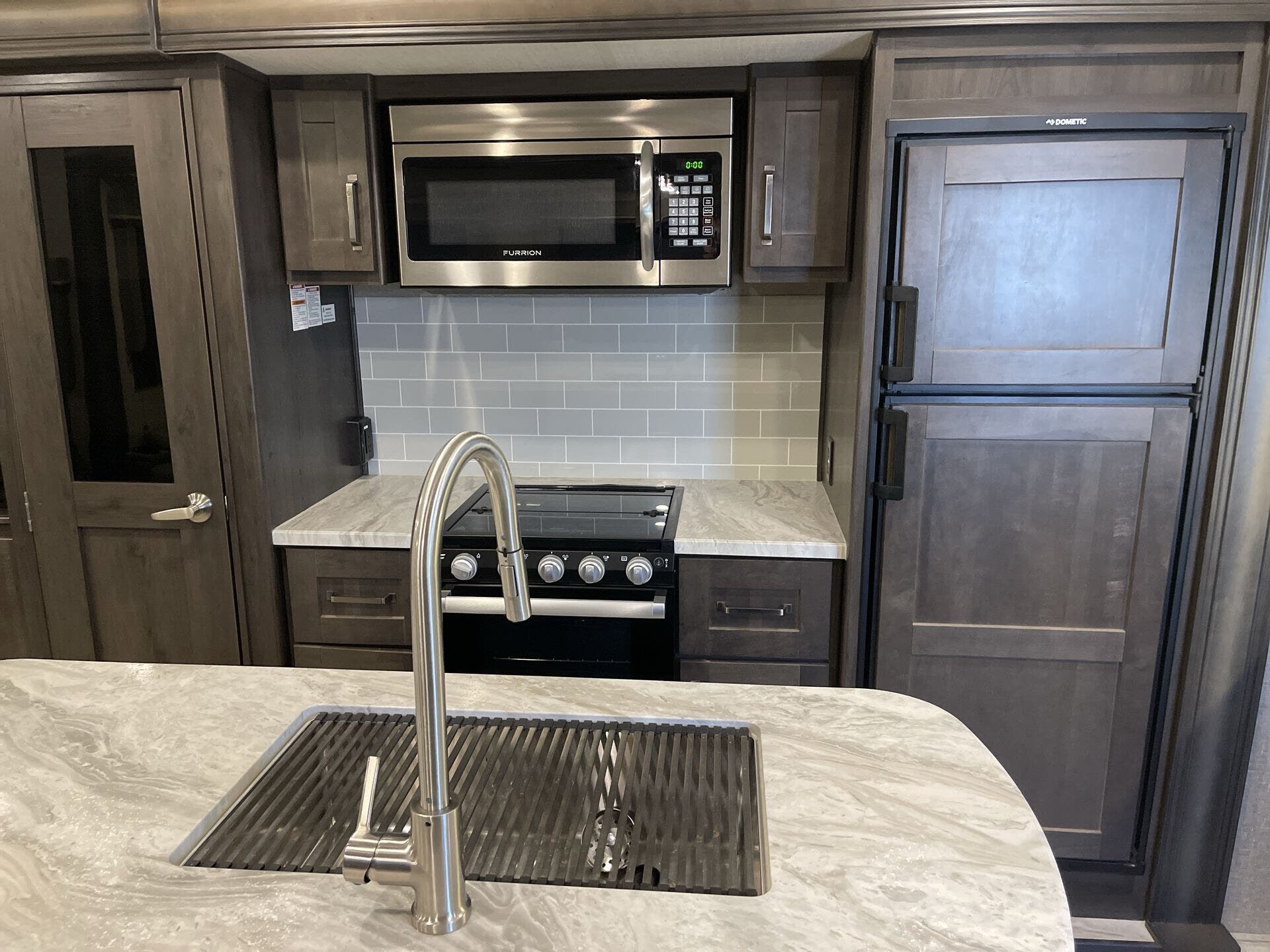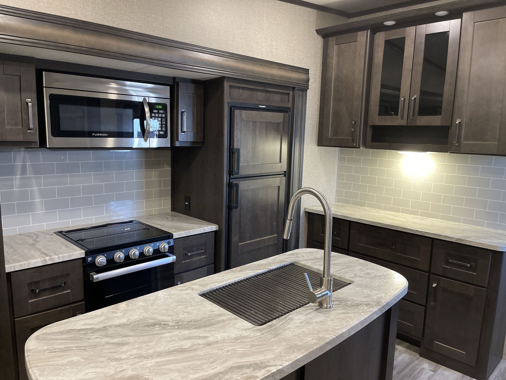 - Two slide-outs that enlarge the living and dining areas for a more open feel