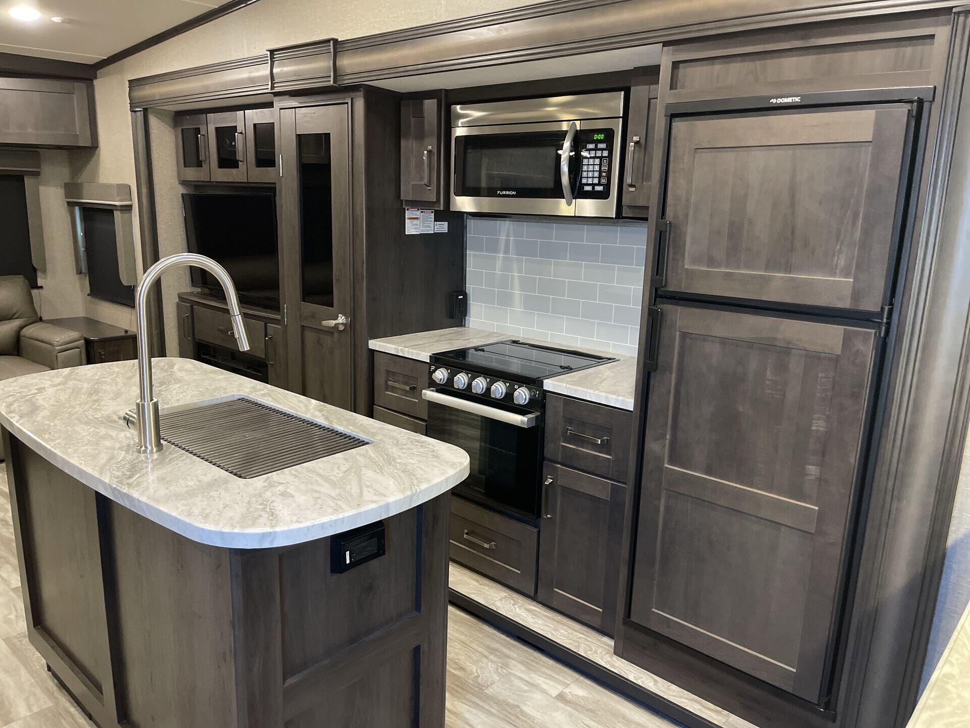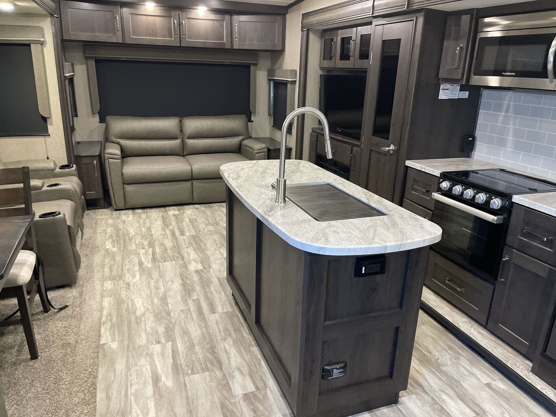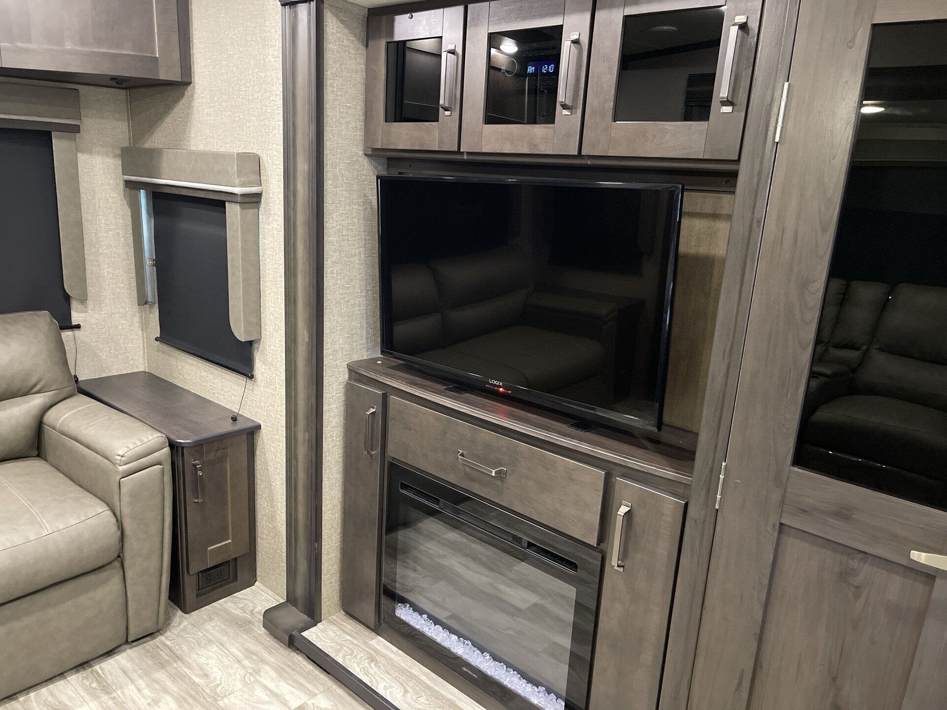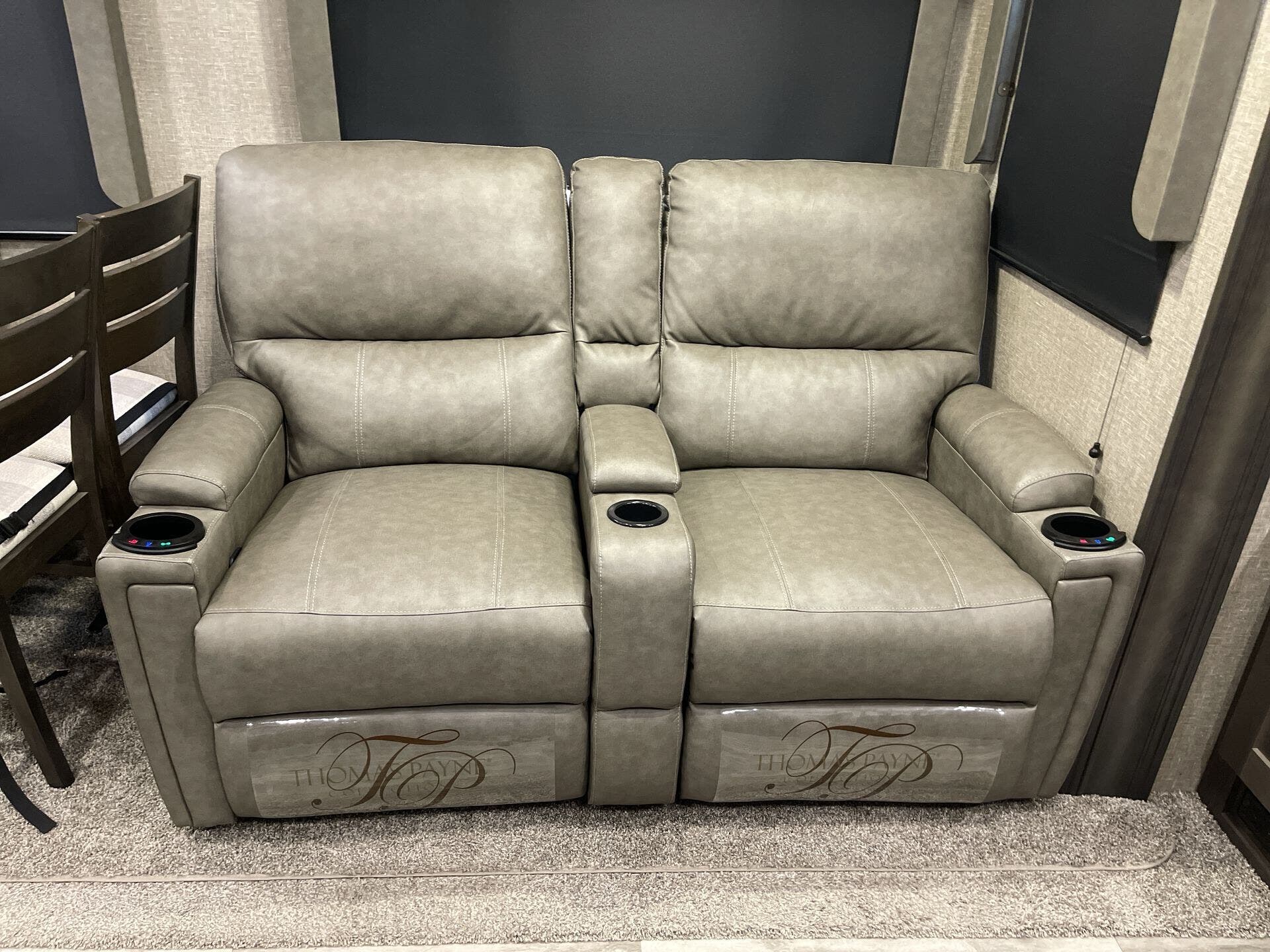 - Rear Living Area layout with theater seating and entertainment options for a cozy home-away-from-home feel