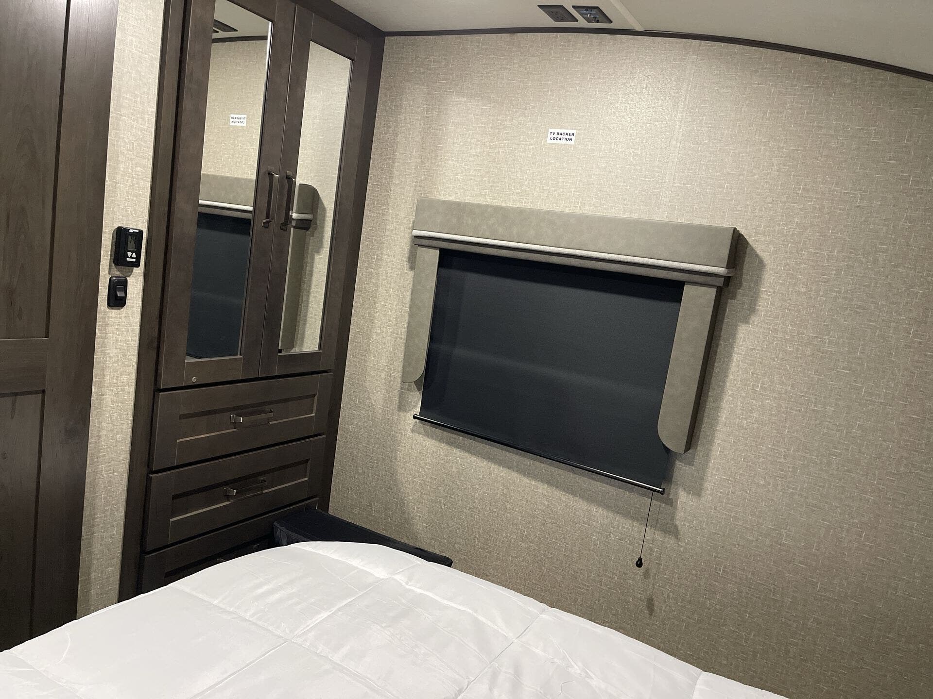 Medicine Cabinet, Queen Bed, Shower, Theater Seating, Toilet