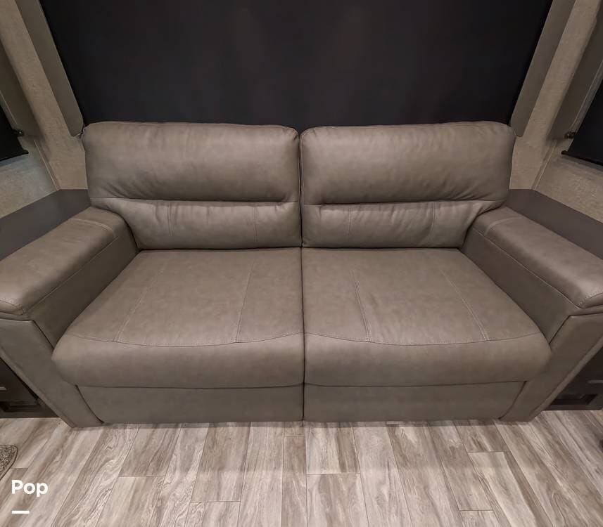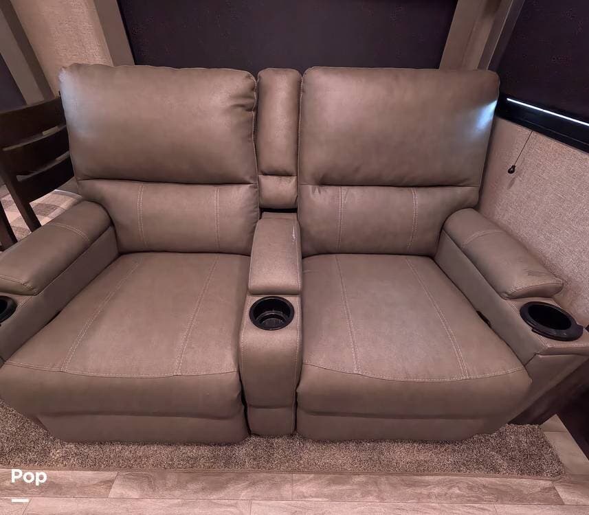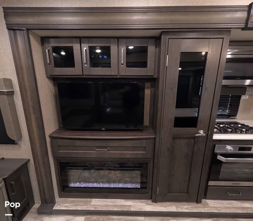 The theater seating across from the entertainment center, which has a 40" HDTV and a fireplace, or the rear tri-fold sofa are the ideal spots to unwind at the end of the evening.