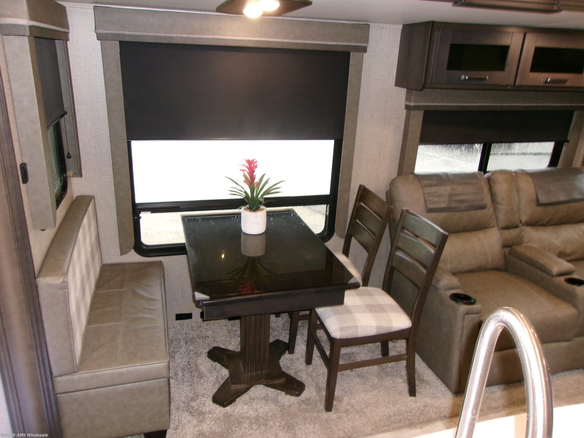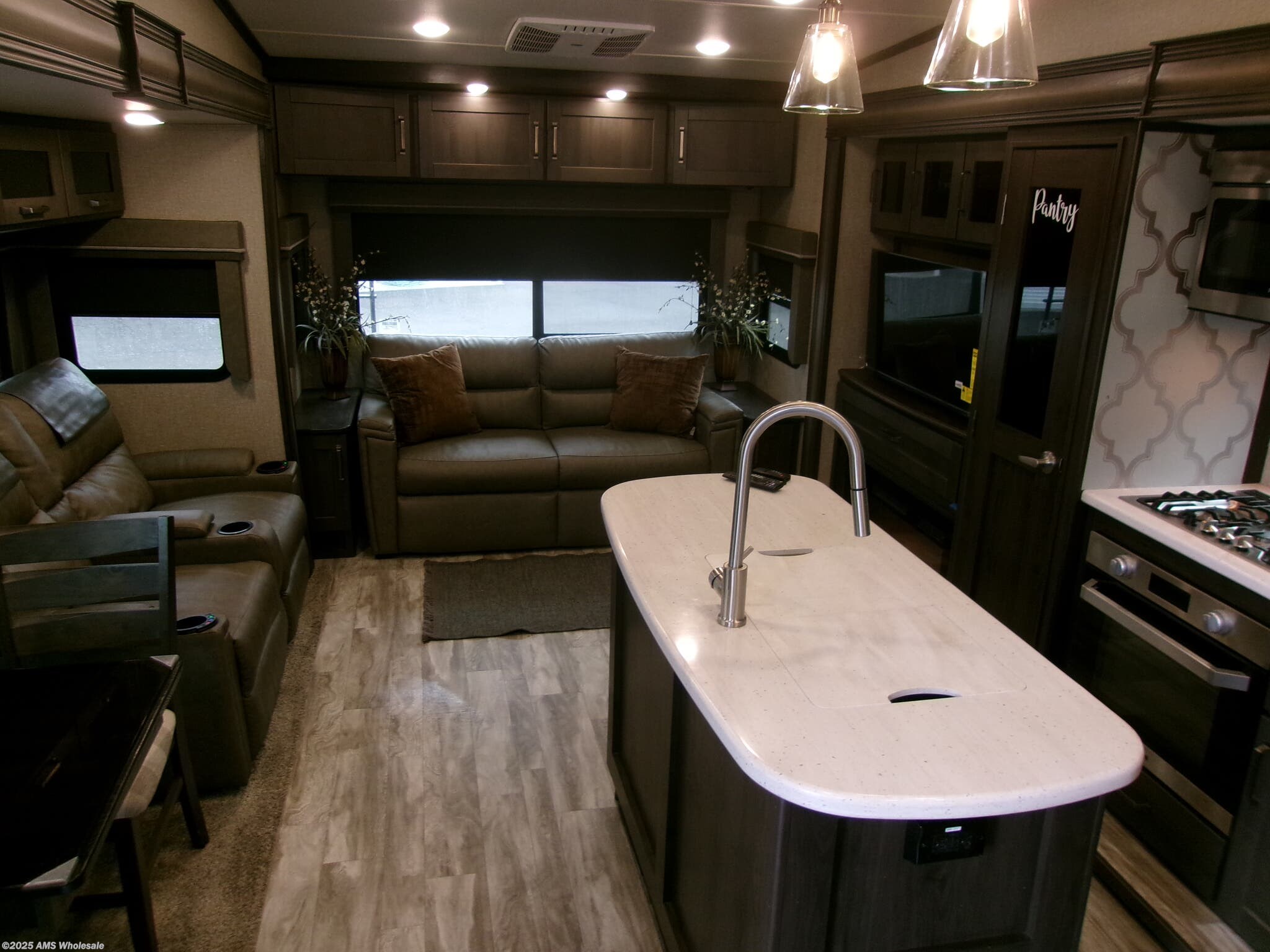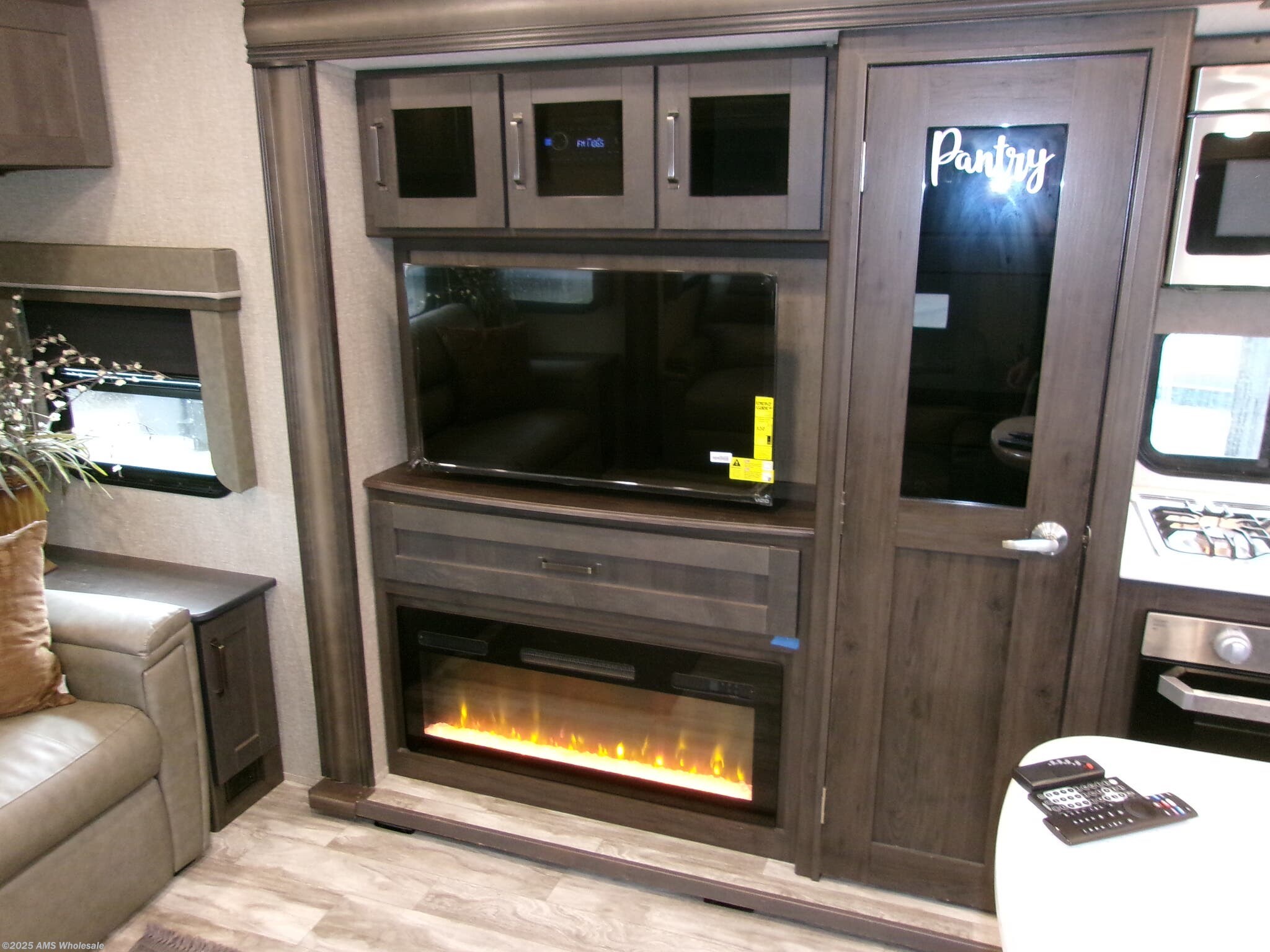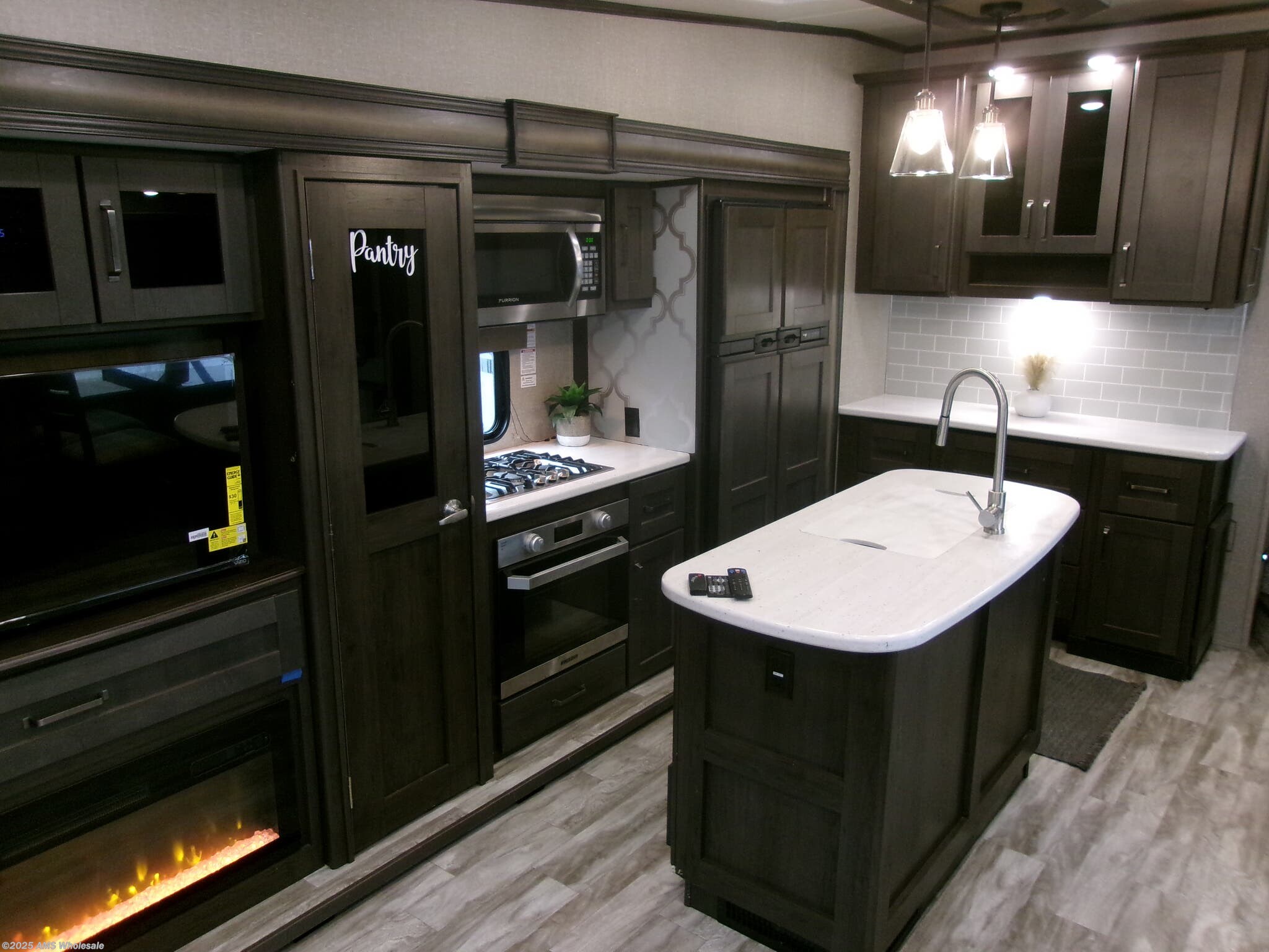 THE REFLECTION IS EQUIPPED WITH A KITCHEN ISLAND, WASHER/DRYER, FIREPLACE, TV, PANTRY, LEATHER SOFA SLEEPER AND RECLINERS, ON DEMAND WATER HEATER, 4 DOOR REFRIGERATOR, DUAL ENTRY INTO THE BATHROOM, DUAL AC, 2 ELECTRIC AWNINGS, AUTO LEVELING SYSTEM, BACK UP CAMERA READY, AND MUCH MORE!!