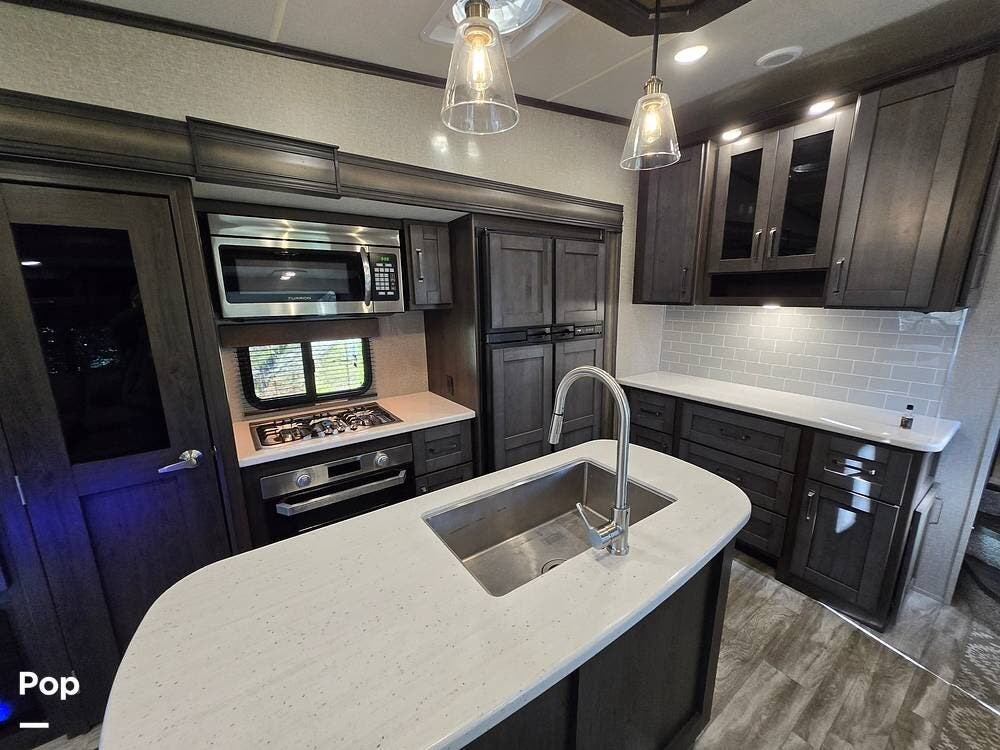 This model is celebrated for its high-end finishes and manageable size, making it one of the most popular fifth wheels in its class.
