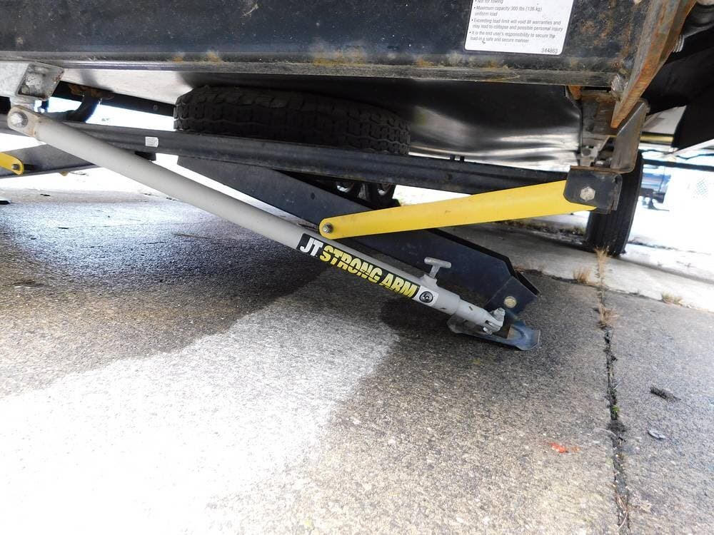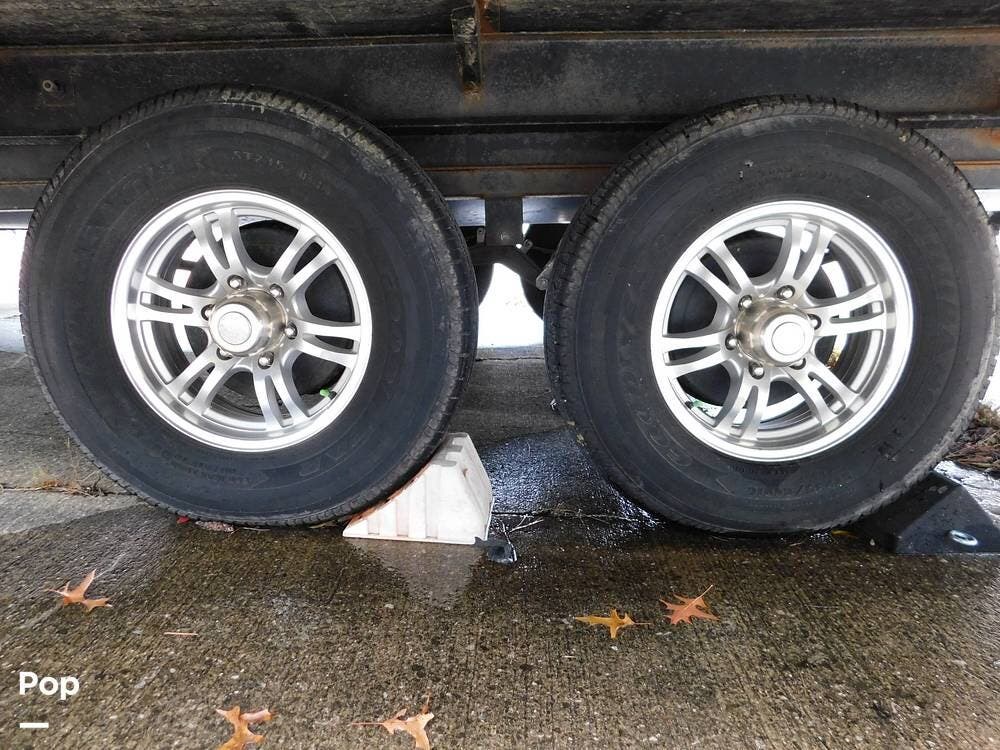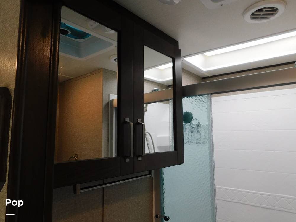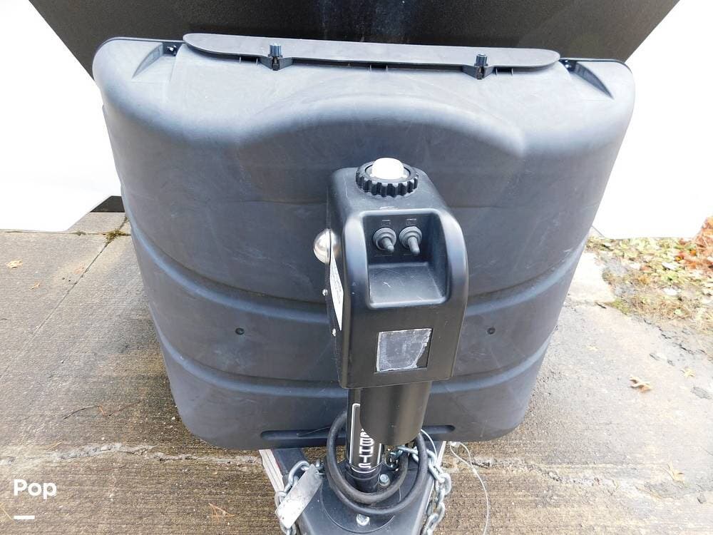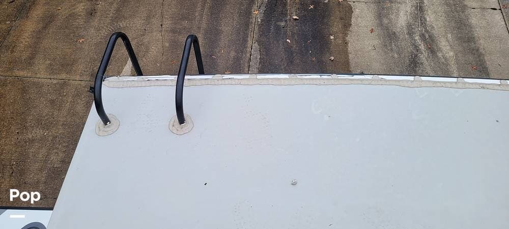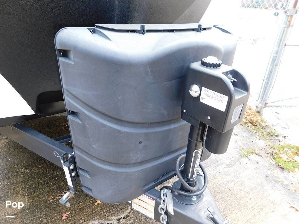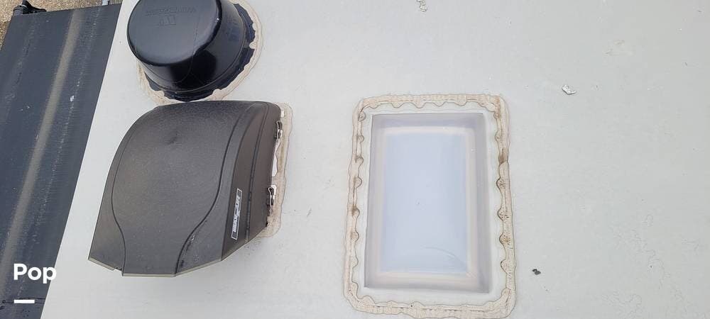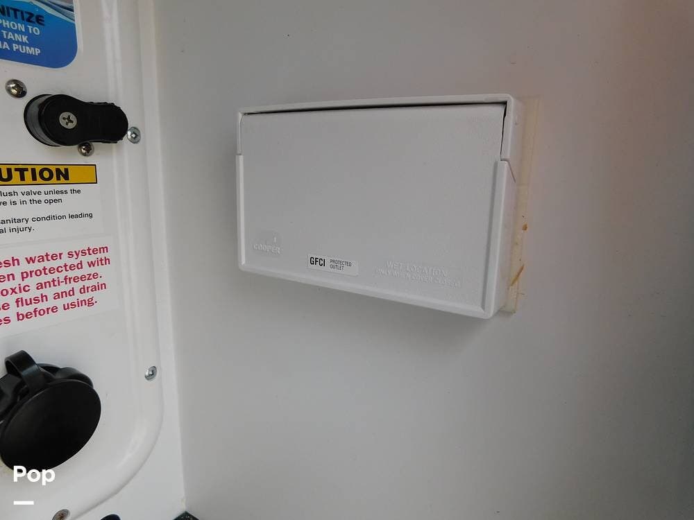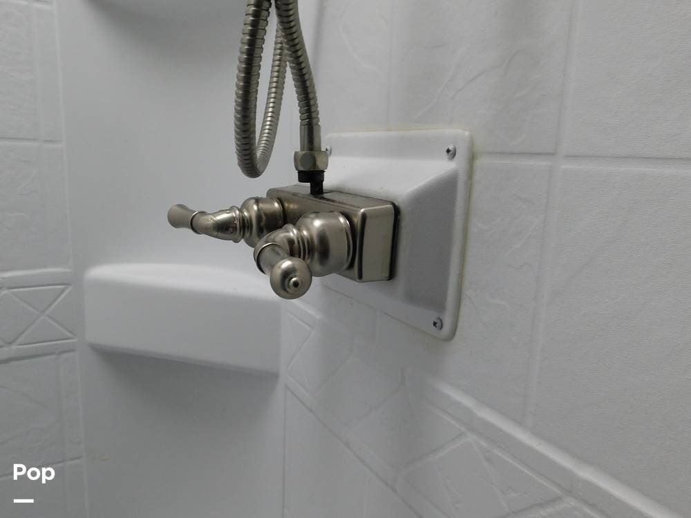 Starting with the exterior of this RV, it has JT struts, a power tongue jack, aluminum wheels, power jacks, pass-through storage, cable/satellite hookup, and the EXTERIOR KITCHEN! Bring your propane grill, because this rig has a plug-and-play propane hookup right by the exterior kitchen. This unit has an extra-long 21-foot awning with LED lighting and is prewired for a backup camera. The seller had slide-out toppers installed on the driver's side slides as well.