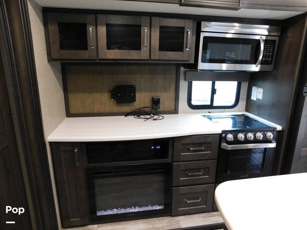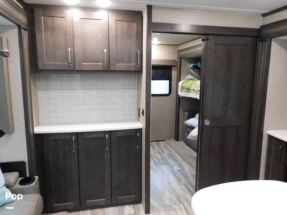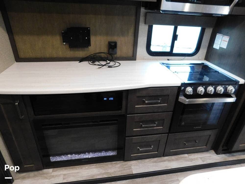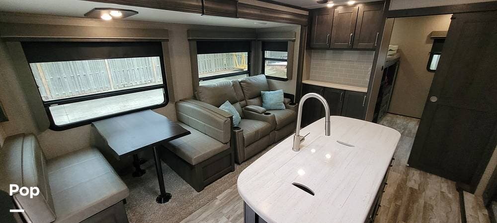 Here we have a lightly used 2020 Reflection 312BHTS by Forest River. This RV has the coveted exterior kitchen, fireplace, bunkhouse, and kitchen island!