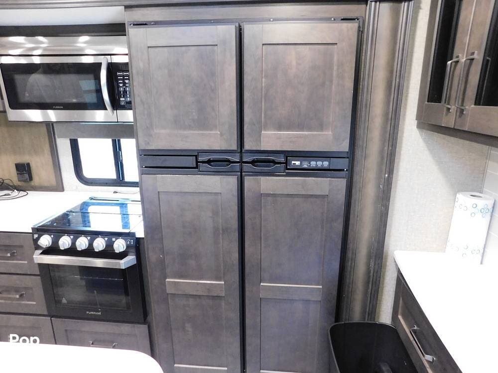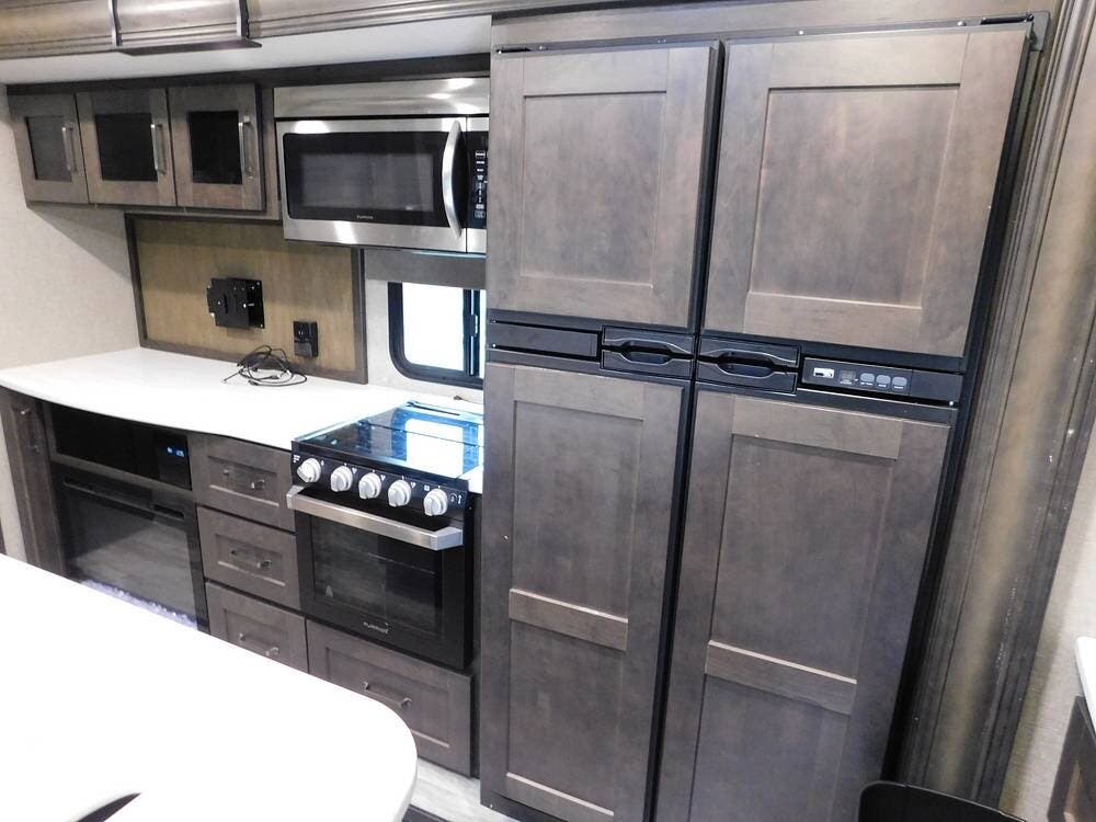 Some of the great features of this RV include the Arctic four-season protection package with a 35k BTU high-capacity furnace, heated holding tanks, and underbelly. It has 15,000 BTUs of ducted A/C and a Maxx Air fan in the main living area to keep you cool in the summer.