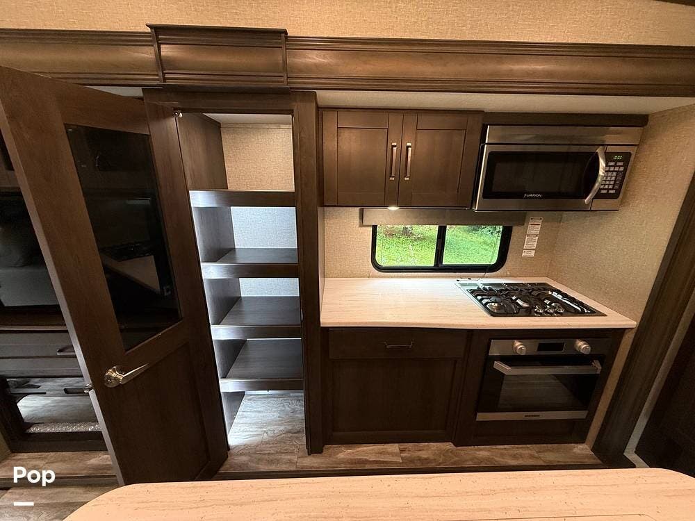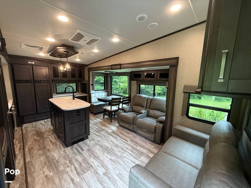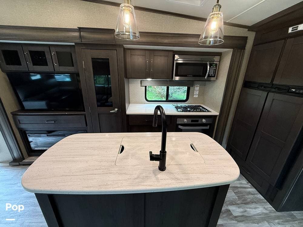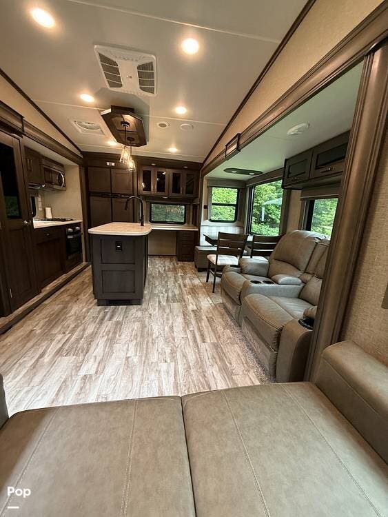This 5th Wheel by Keystone externally features four-season insulation, auto leveling, three slides, two awnings, exterior speakers, an exterior kitchen, TPMS, and much more!